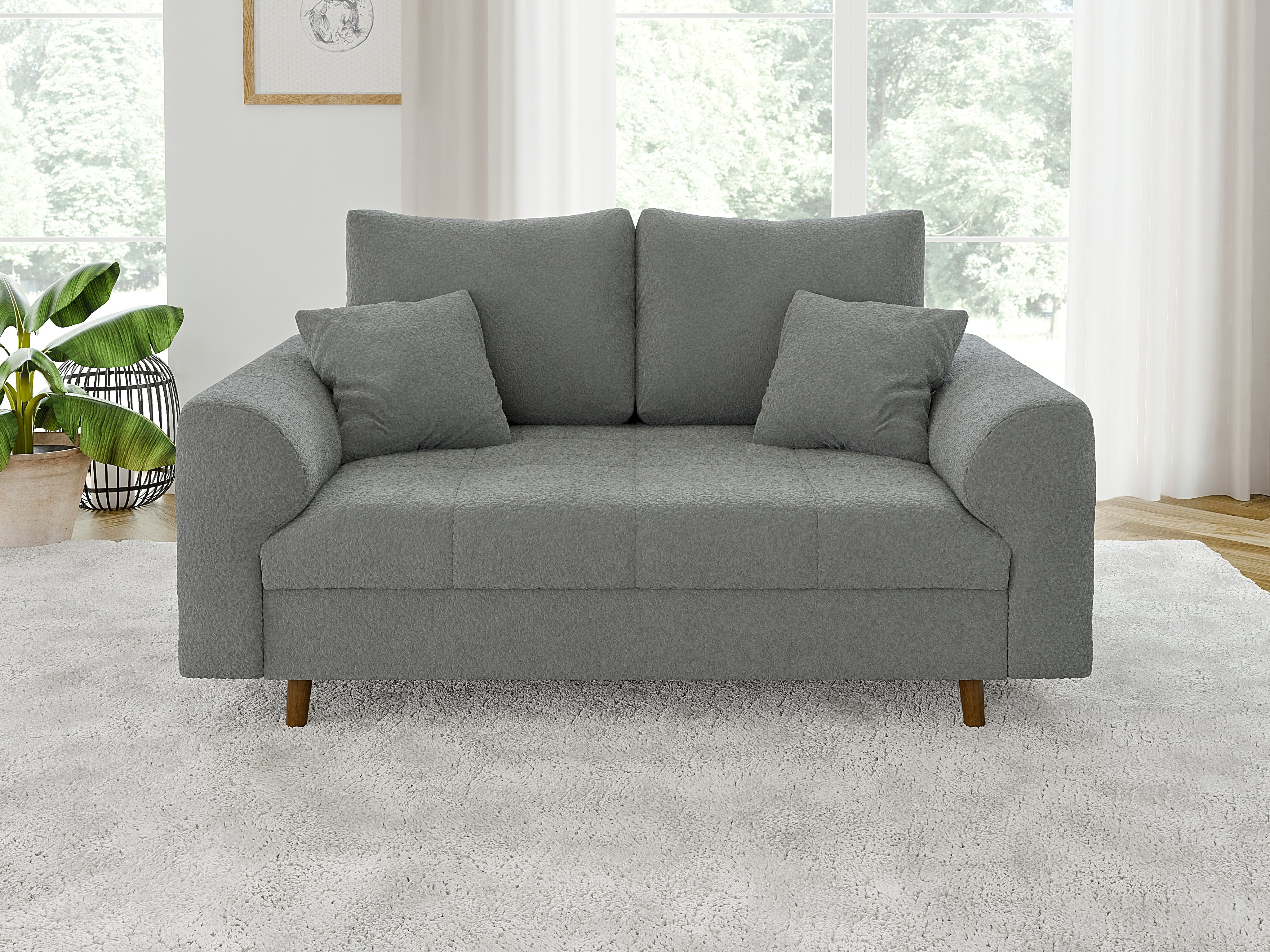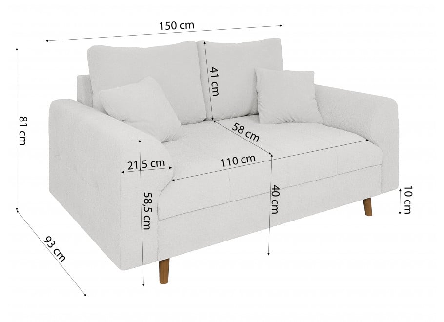 Wypełnienie siedziska stanowi wysokoelastyczna pianka poliuretanowa w połączeniu ze sprężynami falistymi, co zapewnia wyjątkowy komfort siedzenia oraz optymalne podparcie dla ciała. Sofa nie posiada funkcji spania, dzięki czemu jej forma jest smukła i idealnie proporcjonalna.