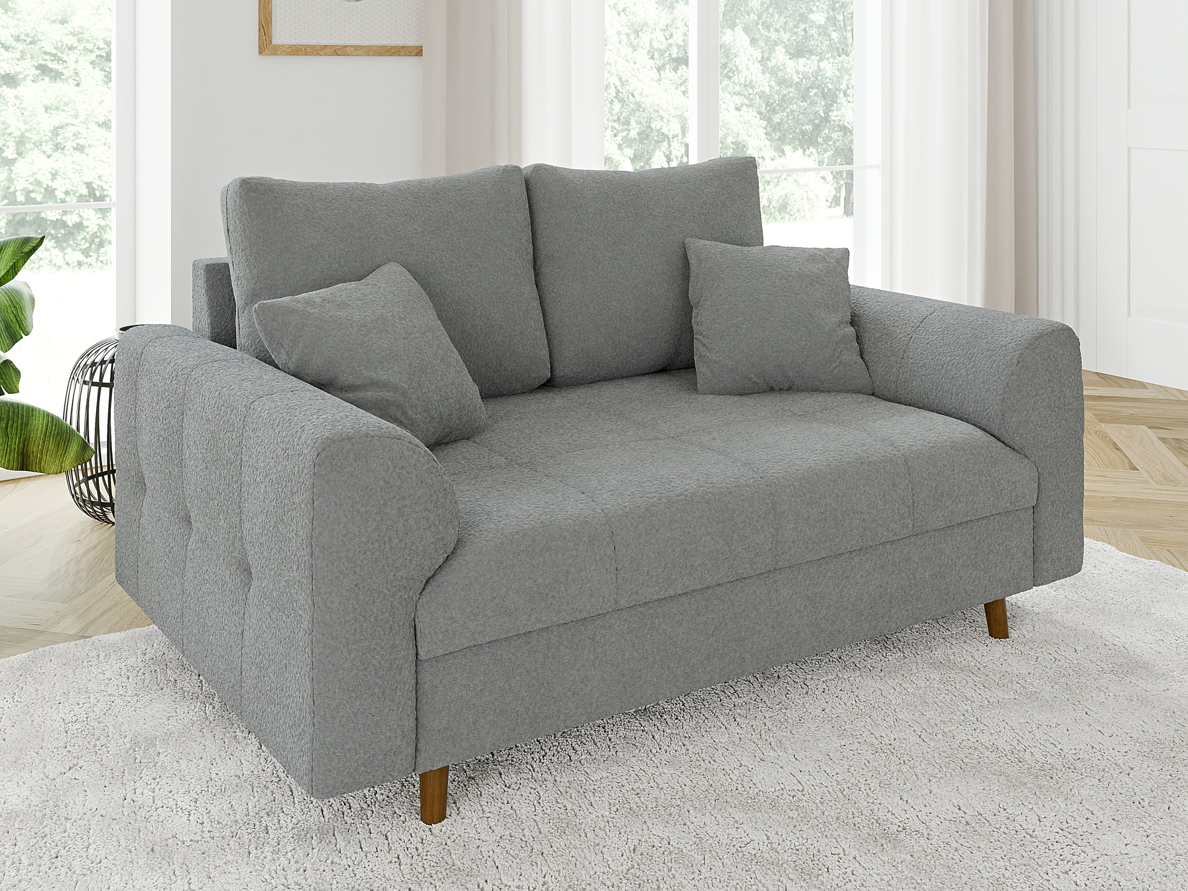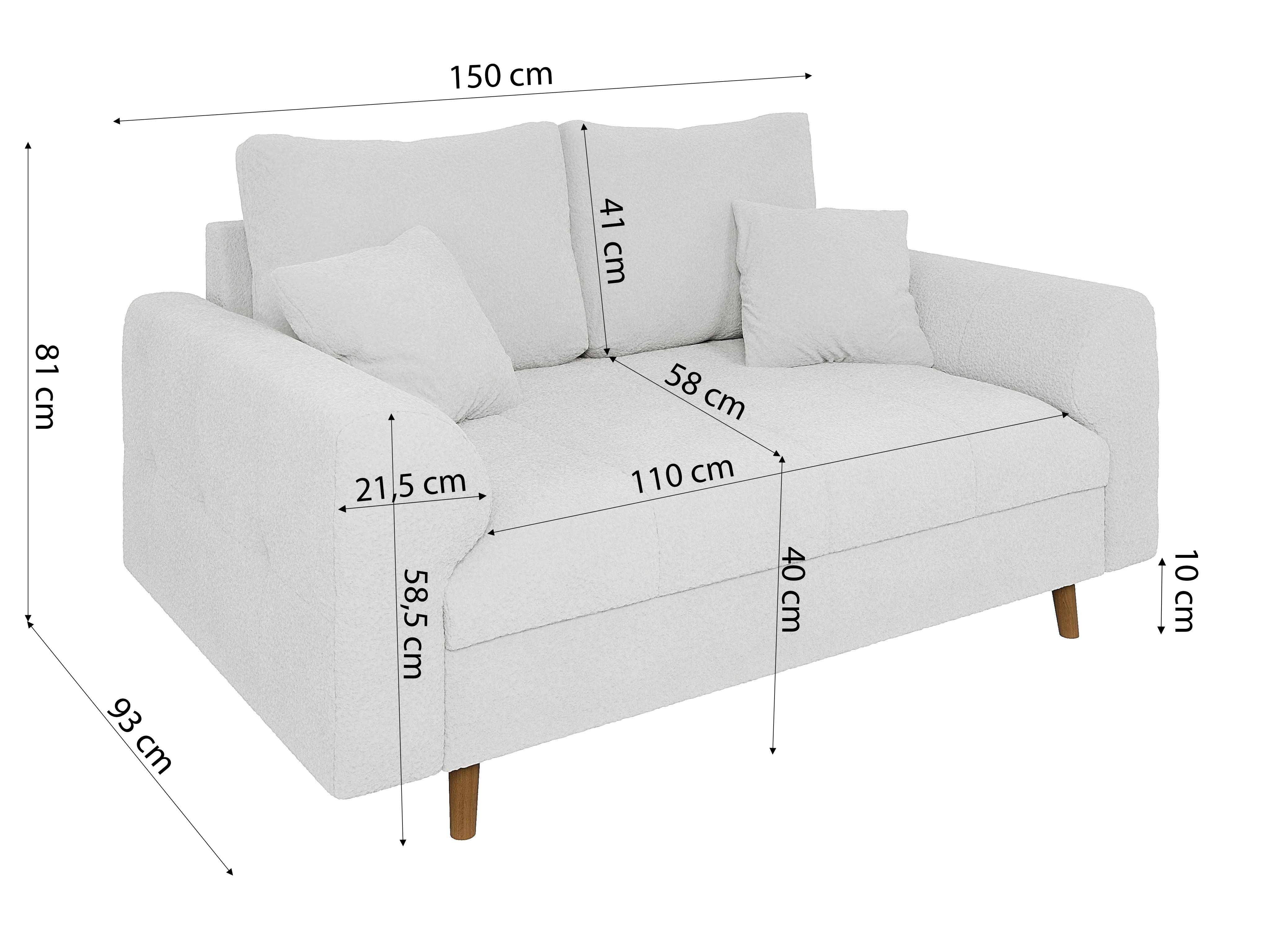 Laril 2-osobowa dostępna jest w szerokiej gamie tkanin i kolorów, co pozwala dopasować ją do indywidualnego stylu wnętrza. Solidna konstrukcja oparta na stelażu z płyty MDF, HDF, drewna litego oraz płyty wiórowej gwarantuje wytrzymałość i stabilność przez lata użytkowania.