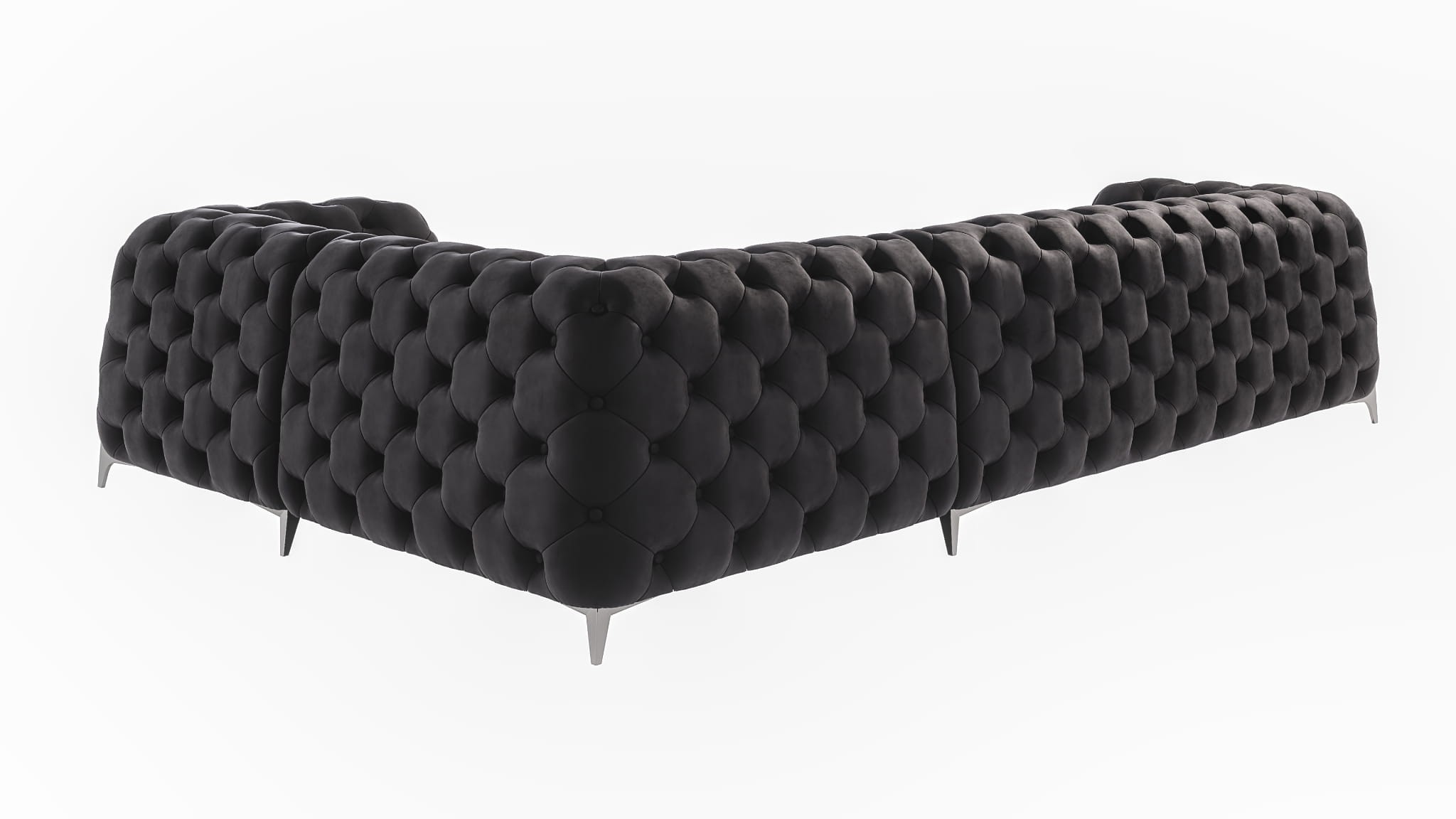 Charakterystyczne pikowania i starannie poprowadzone przeszycia nadają narożnikowi wyjątkowego uroku glamour. To właśnie te detale sprawiają, że model Kalifornia wyróżnia się na tle innych dużych narożników do salonu. Czarne obicie uwydatnia elegancję mebla i znakomicie komponuje się zarówno z aranżacjami klasycznymi, jak i tymi w stylu nowoczesnym, minimalistycznym czy loftowym. W efekcie czarny narożnik staje się wyrazistym elementem wyposażenia, który dodaje wnętrzu głębi i charakteru.