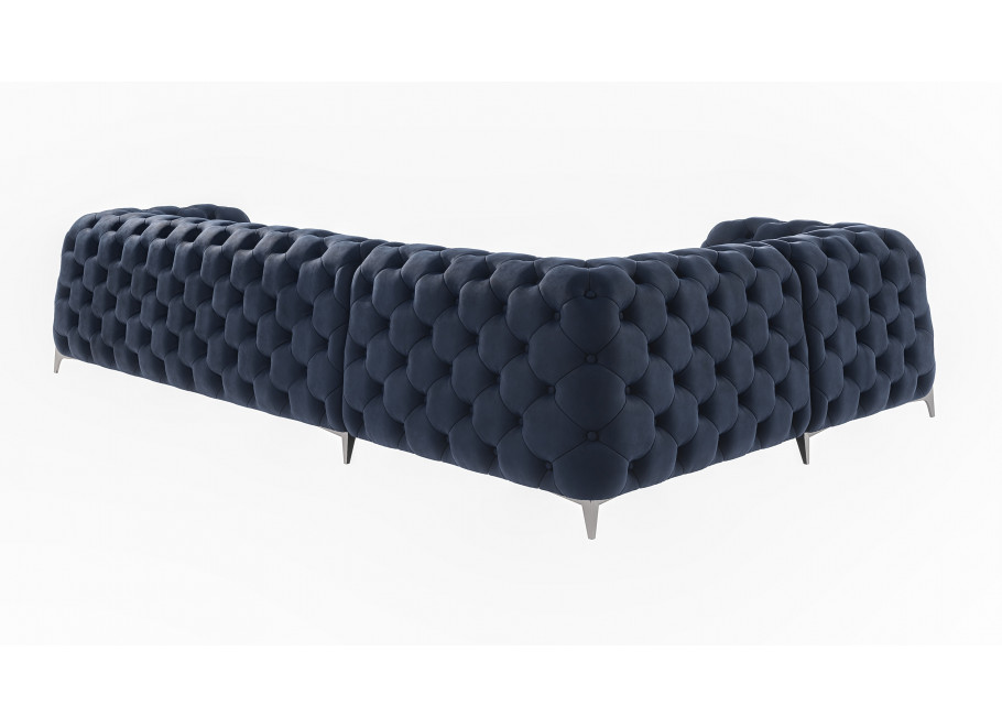Charakterystyczne pikowania i starannie poprowadzone przeszycia nadają narożnikowi wyjątkowego uroku glamour. To właśnie te detale sprawiają, że model Kalifornia wyróżnia się na tle innych dużych narożników do salonu. Czarne obicie uwydatnia elegancję mebla i znakomicie komponuje się zarówno z aranżacjami klasycznymi, jak i tymi w stylu nowoczesnym, minimalistycznym czy loftowym. W efekcie czarny narożnik staje się wyrazistym elementem wyposażenia, który dodaje wnętrzu głębi i charakteru.