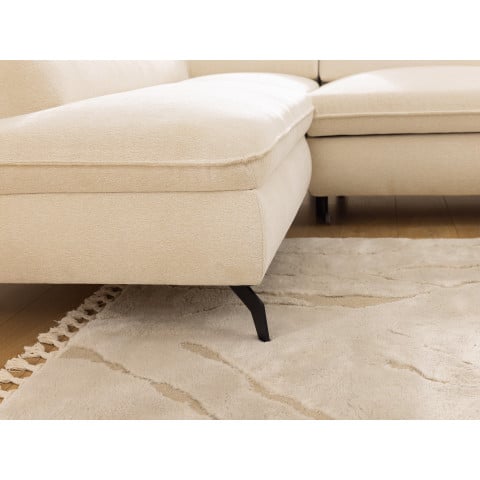 Tapicerka narożnika, dostępna w eleganckim beżowym kolorze, wykonana jest z tkaniny Misterio 4 – materiału z grupy premium. To wytrzymały szenilowy materiał obiciowy na bazie poliestru, charakteryzujący się niezwykle miękką teksturą, wysoką odpornością na ścieranie i niską skłonnością do mechacenia. Tkanina Misterio posiada interesującą strukturę dzięki wplecionym niciom szenilowym, jest plastyczna, łatwa w czyszczeniu i bezpieczna dla zdrowia (certyfikaty Oeko-Tex, norma REACH).