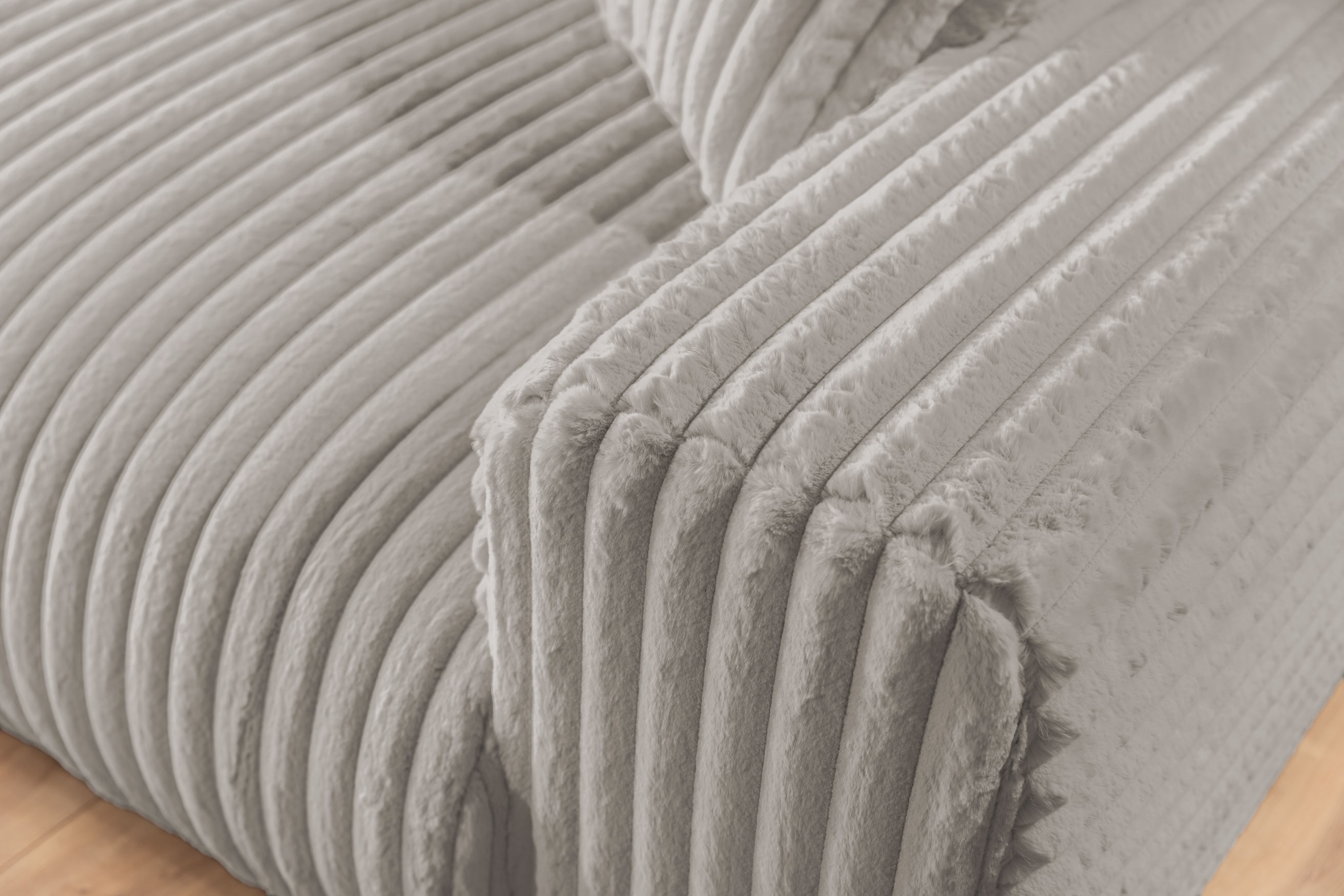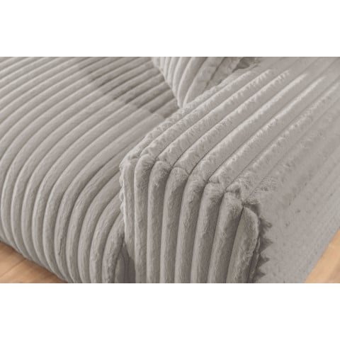 Obicie narożnika Nubo stanowi ekskluzywna tkanina VITO to wyjątkowa dzianina futerkowa z grupy High Premium, imitująca bardzo gruby sztruks. Charakteryzuje się gęstymi, długimi włóknami, dzięki czemu jest niezwykle miękka i delikatna w dotyku. Tkanina jest dwuwarstwowa: jedne nici tworzą estetyczną okrywę (o naturalnym, estetycznym układzie włosia i trójwymiarowości), a drugie – solidną bazę, gwarantującą wysoką odporność mechaniczną i trwałość potwierdzoną testami. VITO ma wysoką odporność na ścieranie, tarcie (suche i mokre) oraz światło sztuczne. Jest trudnopalna, hipoalergiczna i bezpieczna dla dzieci oraz alergików. Wyposażona w technologię Pet Proof (odporność na zaciągnięcia) i powłokę „Easy Clean”, zapewnia łatwe i szybkie czyszczenie zabrudzeń.