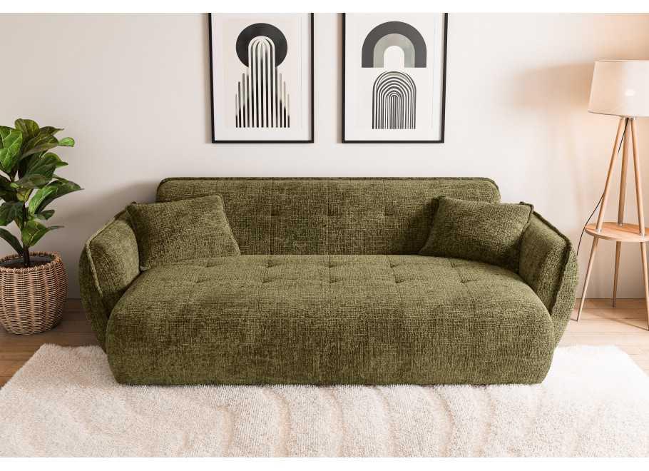 Sofa Lumi w wersji 4-osobowej to mebel, który redefiniuje pojęcie domowego relaksu, oferując imponującą przestrzeń dla całej rodziny. Jej projekt opiera się na modnej, niskiej i obłej bryle, która idealnie wpisuje się w najnowsze trendy wnętrzarskie, takie jak styl nowoczesny, japandi czy soft loft. Wyjątkowy charakter mebla podkreślają subtelne wciągi na siedzisku i oparciu, które nadają mu puszystości i sprawiają, że od pierwszego spojrzenia kojarzy się z niezwykłą miękkością. Dzięki swojej liniowej konstrukcji, sofa Lumi stanowi elegancką alternatywę dla narożnika, oferując tę samą głębię komfortu w symetrycznej formie.