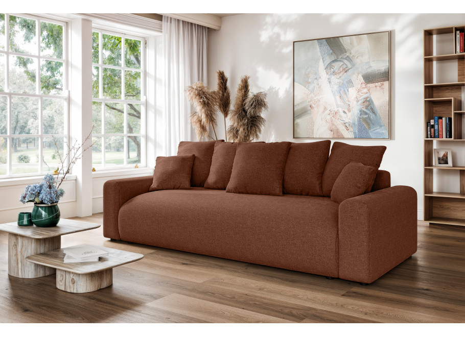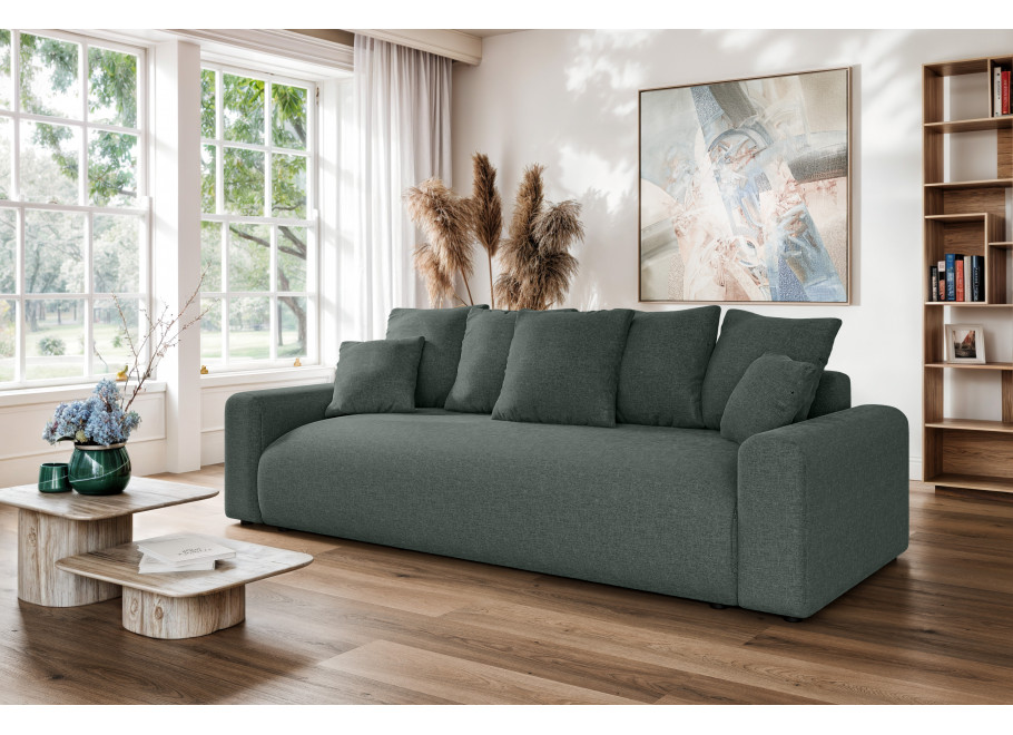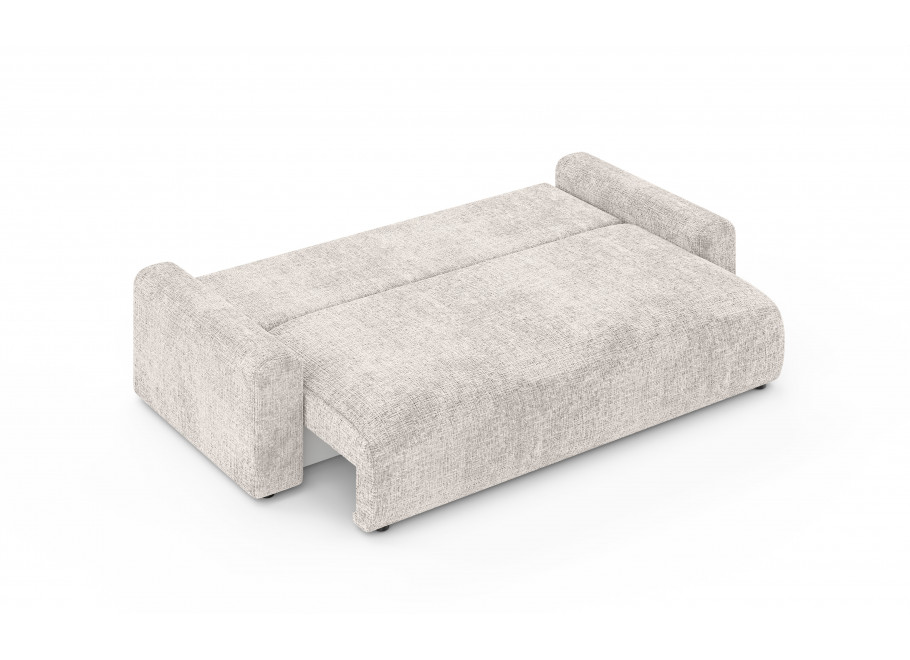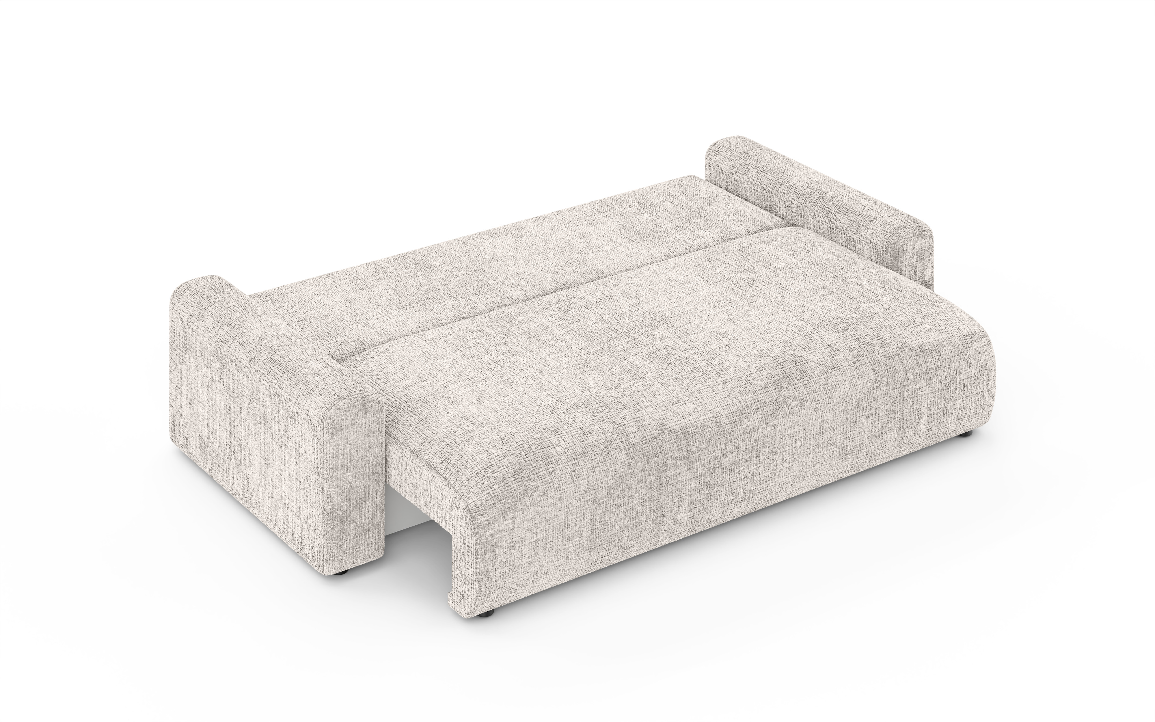 Sofa Cleo to nie tylko komfortowy mebel salonowy, ale także praktyczne rozwiązanie noclegowe. Wyposażona w intuicyjny mechanizm rozkładania, oferuje imponującą funkcję spania o wymiarach 148 x 196 cm, co czyni ją pełnowymiarowym łóżkiem idealnym dla gości lub do regularnego użytku nocnego. Dodatkowym atutem jest bardzo pojemny pojemnik na pościel o wymiarach 190 x 65 x 20,5 cm, który pozwala na swobodne przechowywanie kompletów kołder, poduszek i koców, pomagając utrzymać Twój salon w nienagannym porządku.