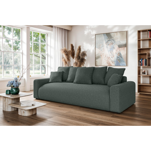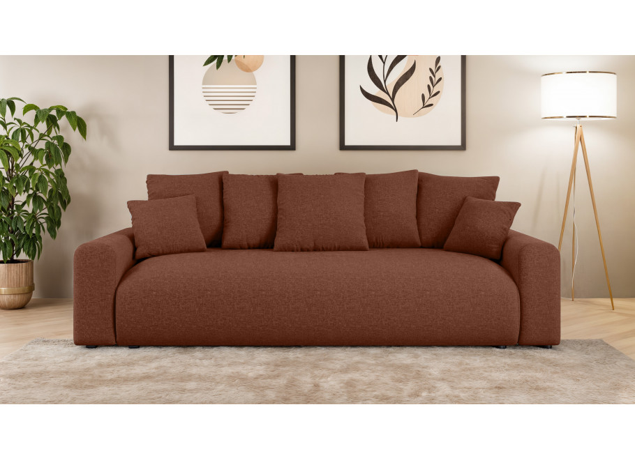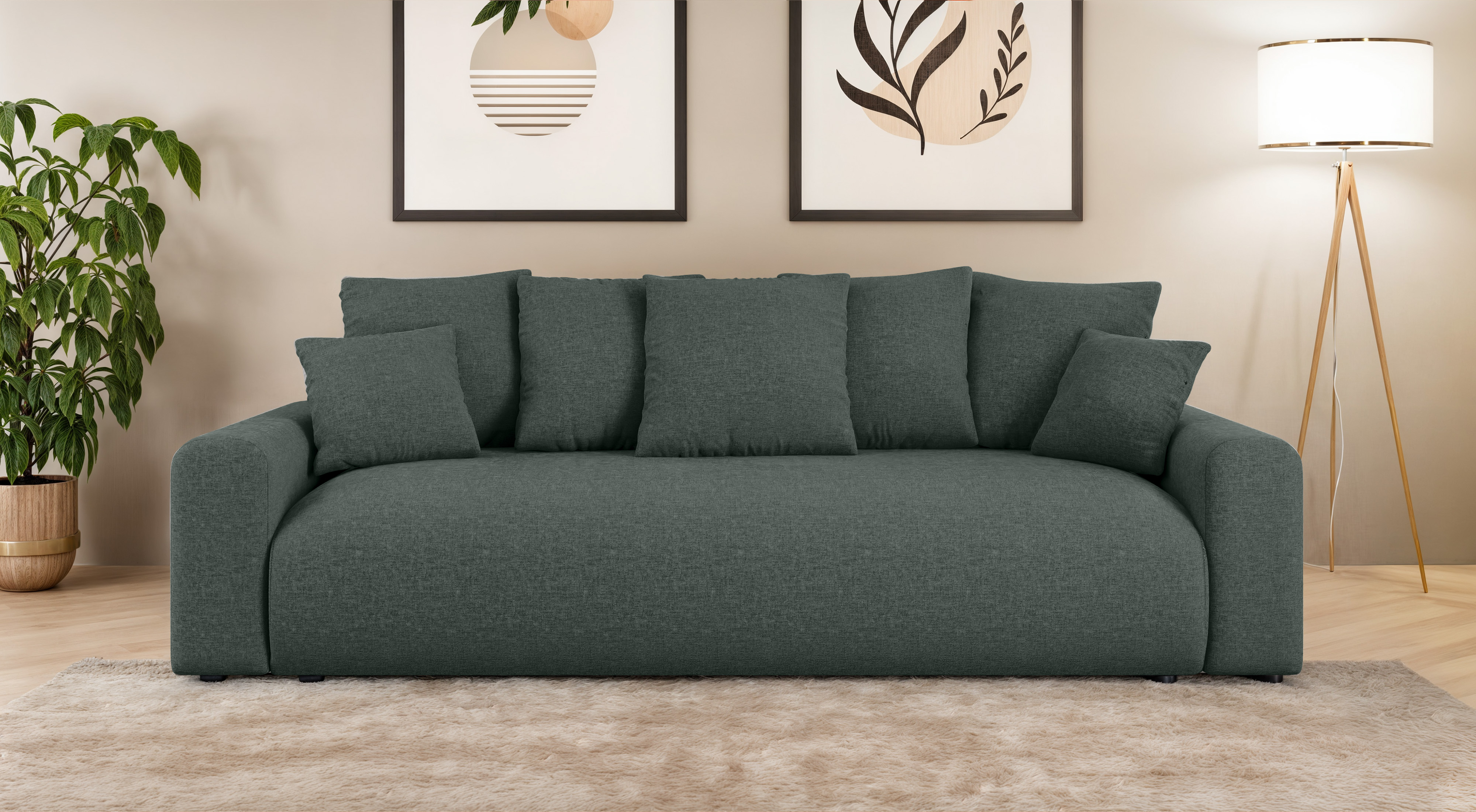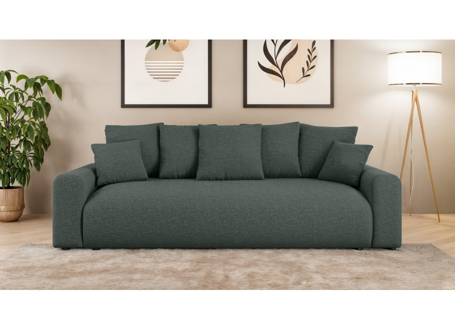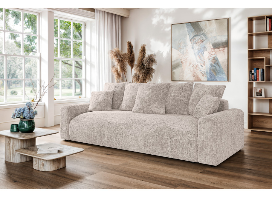 Sofa Cleo to nie tylko komfortowy mebel salonowy, ale także praktyczne rozwiązanie noclegowe. Wyposażona w intuicyjny mechanizm rozkładania, oferuje imponującą funkcję spania o wymiarach 148 x 196 cm, co czyni ją pełnowymiarowym łóżkiem idealnym dla gości lub do regularnego użytku nocnego. Dodatkowym atutem jest bardzo pojemny pojemnik na pościel o wymiarach 190 x 65 x 20,5 cm, który pozwala na swobodne przechowywanie kompletów kołder, poduszek i koców, pomagając utrzymać Twój salon w nienagannym porządku.