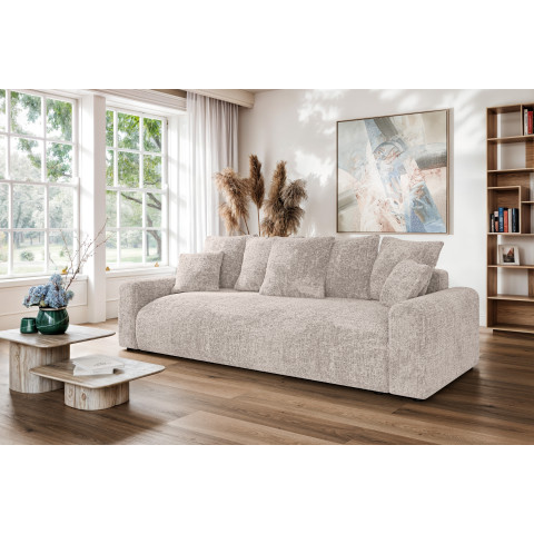 Trwałość mebla gwarantuje solidny szkielet wykonany z wytrzymałych materiałów, takich jak płyty wiórowe, MDF, HDF, drewno lite oraz sklejka. Taka konstrukcja to pewność stabilności na długie lata intensywnego użytkowania. Tapicerka o wyrazistej strukturze nadaje sofie wyjątkowy charakter, a delikatnie zaokrąglone kształty sprawiają, że mebel ten idealnie wpisuje się w nowoczesne, przytulne oraz skandynawskie aranżacje. Sofa dostępna jest w szerokiej gamie kolorystycznej i tapicerskiej, co pozwala na jej perfekcyjne dopasowanie do Twojego domu.