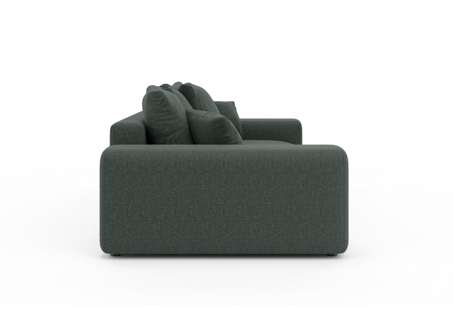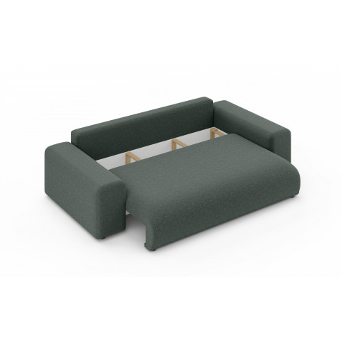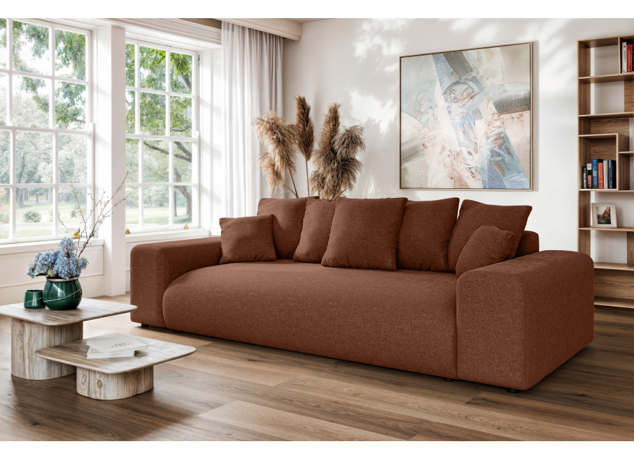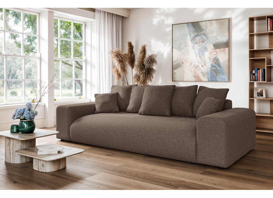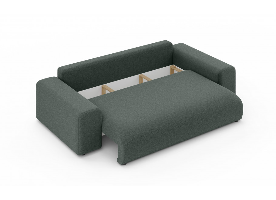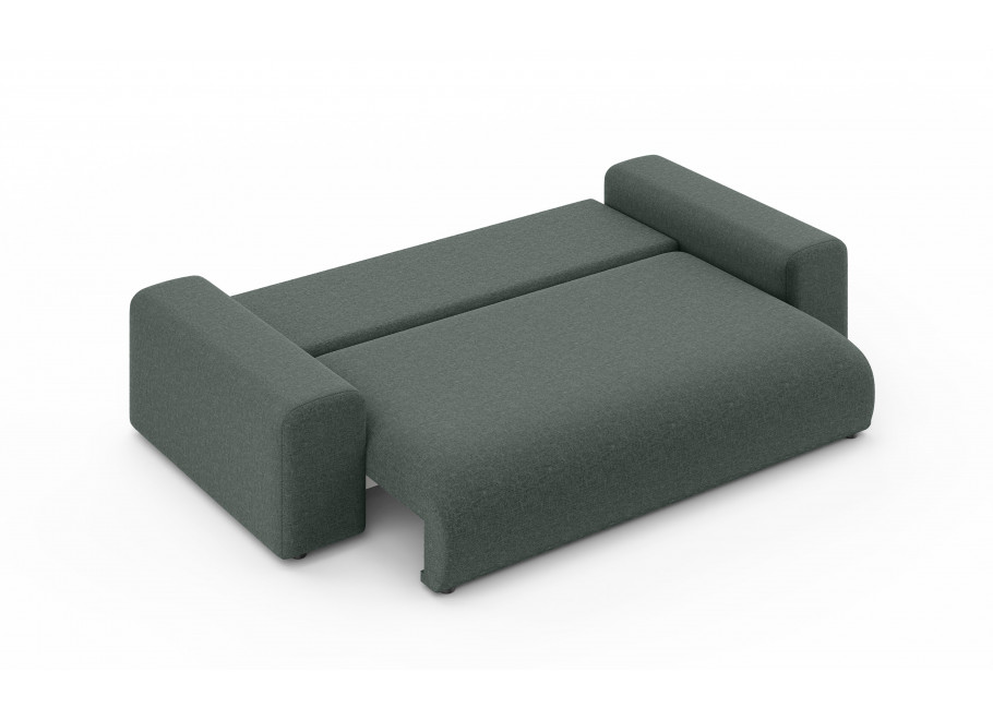 Sofa Cleo to nie tylko komfortowy mebel salonowy, ale także praktyczne rozwiązanie noclegowe. Wyposażona w intuicyjny mechanizm rozkładania, oferuje imponującą funkcję spania o wymiarach167 x 196 co czyni ją pełnowymiarowym łóżkiem idealnym dla gości lub do regularnego użytku nocnego. Dodatkowym atutem jest bardzo pojemny pojemnik na pościel o wymiarach 190 x 90 x 16,5 cm, który pozwala na swobodne przechowywanie kompletów kołder, poduszek i koców, pomagając utrzymać Twój salon w nienagannym porządku.