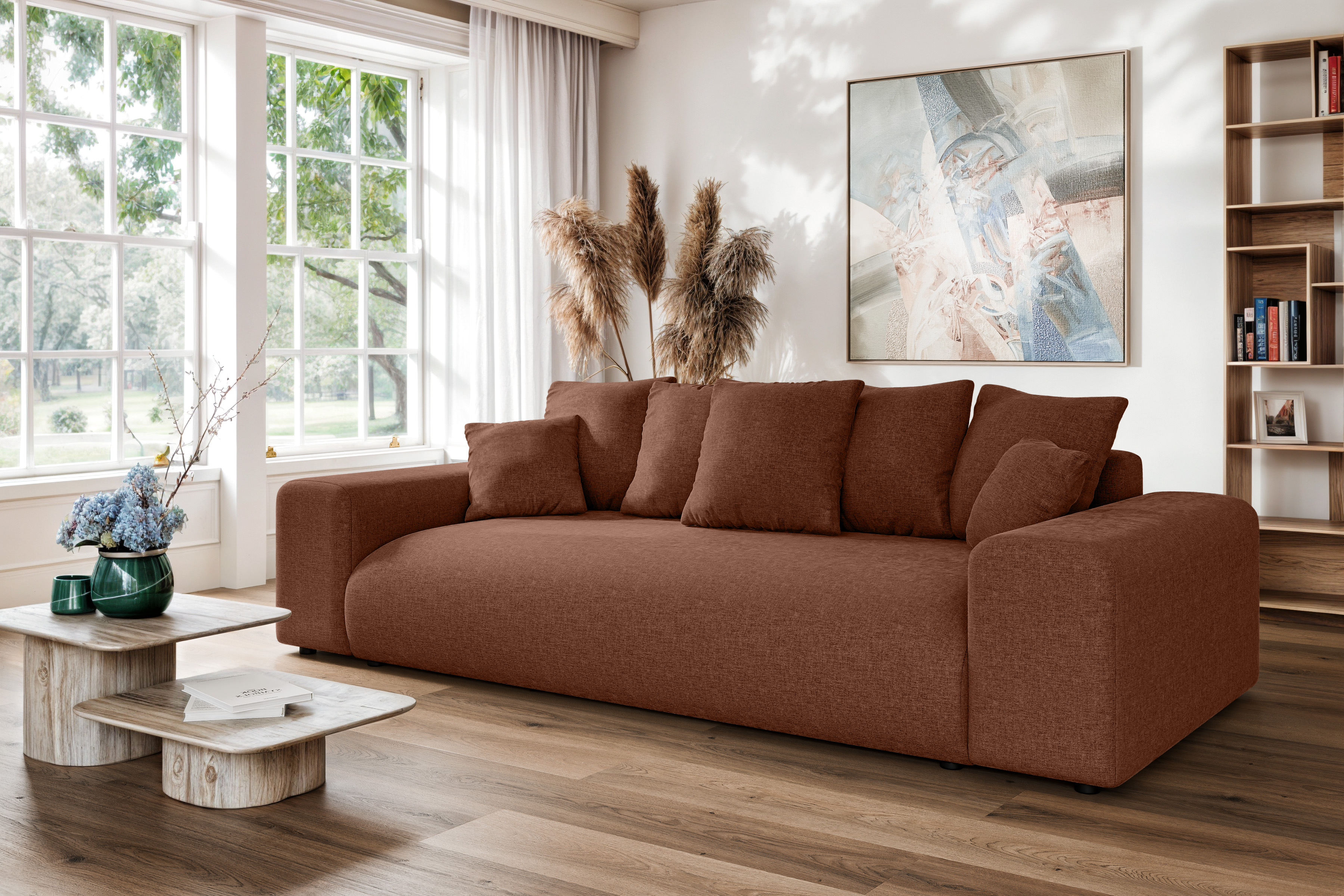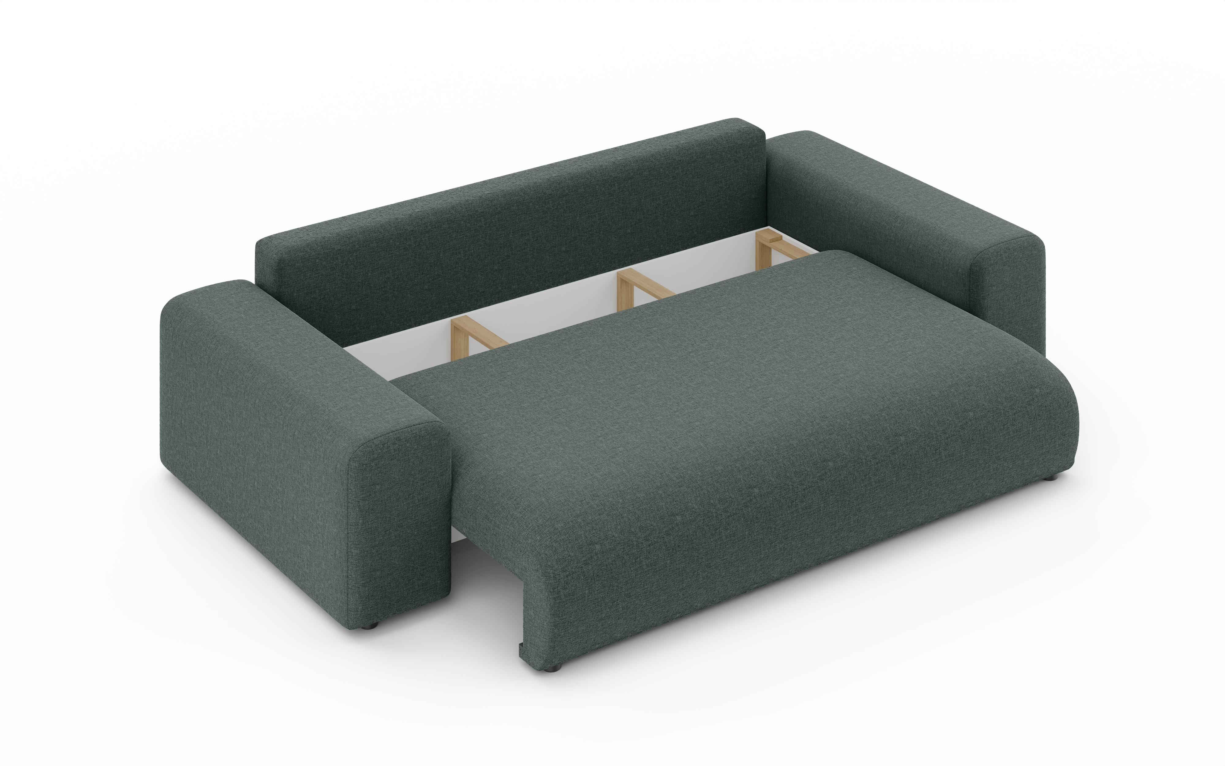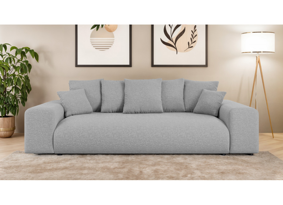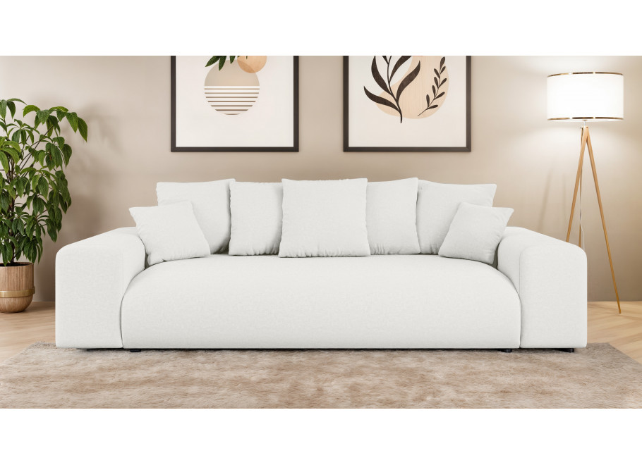 Sofa Cleo to nie tylko komfortowy mebel salonowy, ale także praktyczne rozwiązanie noclegowe. Wyposażona w intuicyjny mechanizm rozkładania, oferuje imponującą funkcję spania o wymiarach167 x 196 co czyni ją pełnowymiarowym łóżkiem idealnym dla gości lub do regularnego użytku nocnego. Dodatkowym atutem jest bardzo pojemny pojemnik na pościel o wymiarach 190 x 90 x 16,5 cm, który pozwala na swobodne przechowywanie kompletów kołder, poduszek i koców, pomagając utrzymać Twój salon w nienagannym porządku.