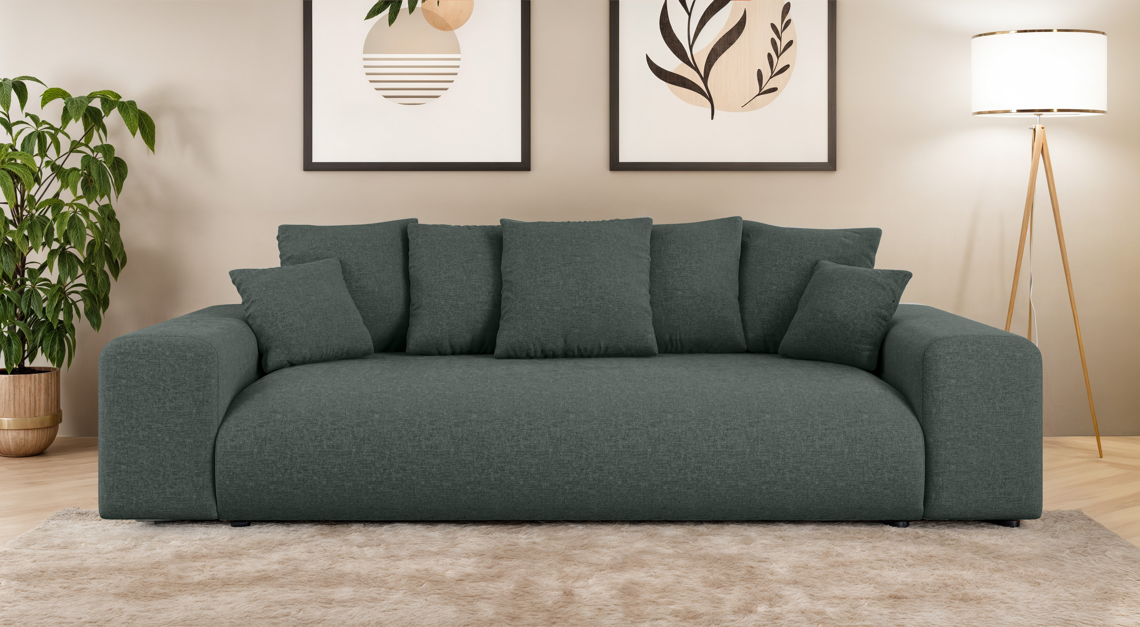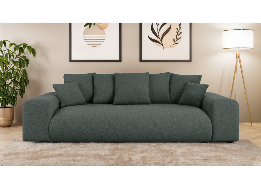 Wyjątkowy komfort użytkowania sofy Cleo dopełnia zestaw starannie zaprojektowanych poduszek. Oparcie tworzy 5 dużych poduszek oparciowych o wymiarach 50x50x20 cm, które zapewniają miękkie i stabilne wsparcie dla pleców. Dodatkowo w komplecie znajdują się 2 poduszki dekoracyjne o wymiarach 38x38x15 cm, które nie tylko stanowią elegancki akcent wizualny, ale mogą służyć jako dodatkowe podparcie pod głowę lub lędźwie podczas odpoczynku.