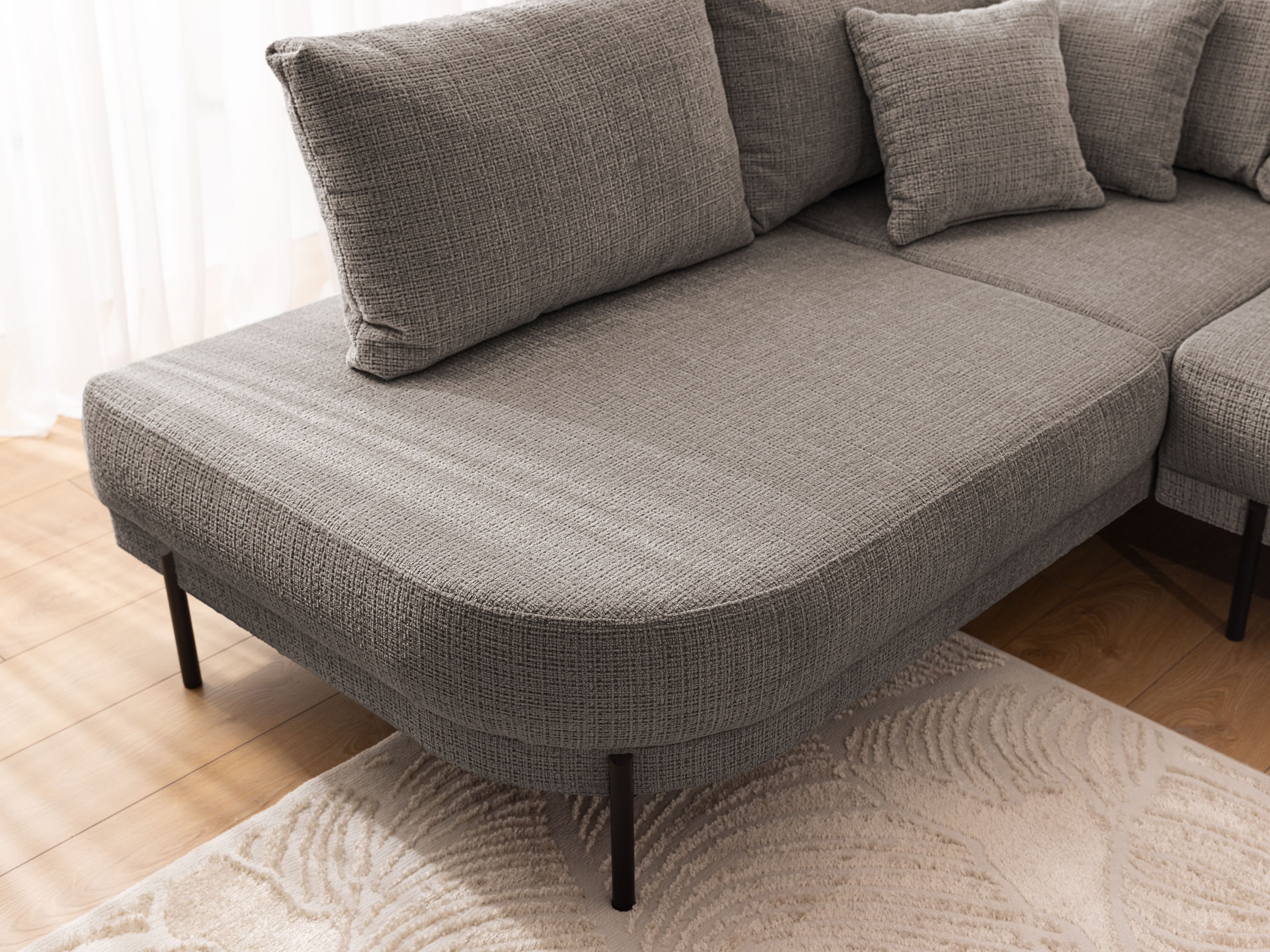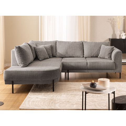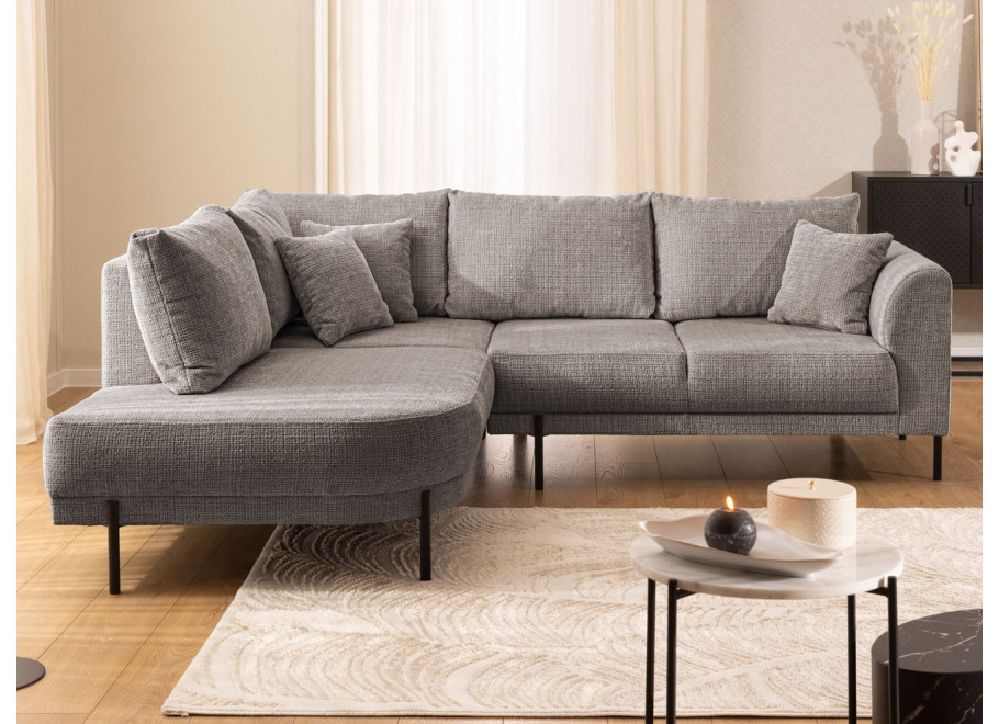 Wybierz narożnik Tilla, jeśli szukasz mebla, który łączy w sobie elegancję z niebywałym poczuciem domowego ciepła. Odcień szary brąz to doskonały kompromis dla osób ceniących barwy ziemi i nowoczesny design. Centralnym punktem projektu jest unikalny, obły szezlong, który przełamuje klasyczne schematy mebli wypoczynkowych. Dzięki zastosowaniu wysokich nóżek, bryła wydaje się unosić nad podłogą, co ułatwia utrzymanie czystości i sprawia, że wnętrze wydaje się większe i bardziej przewiewne.
