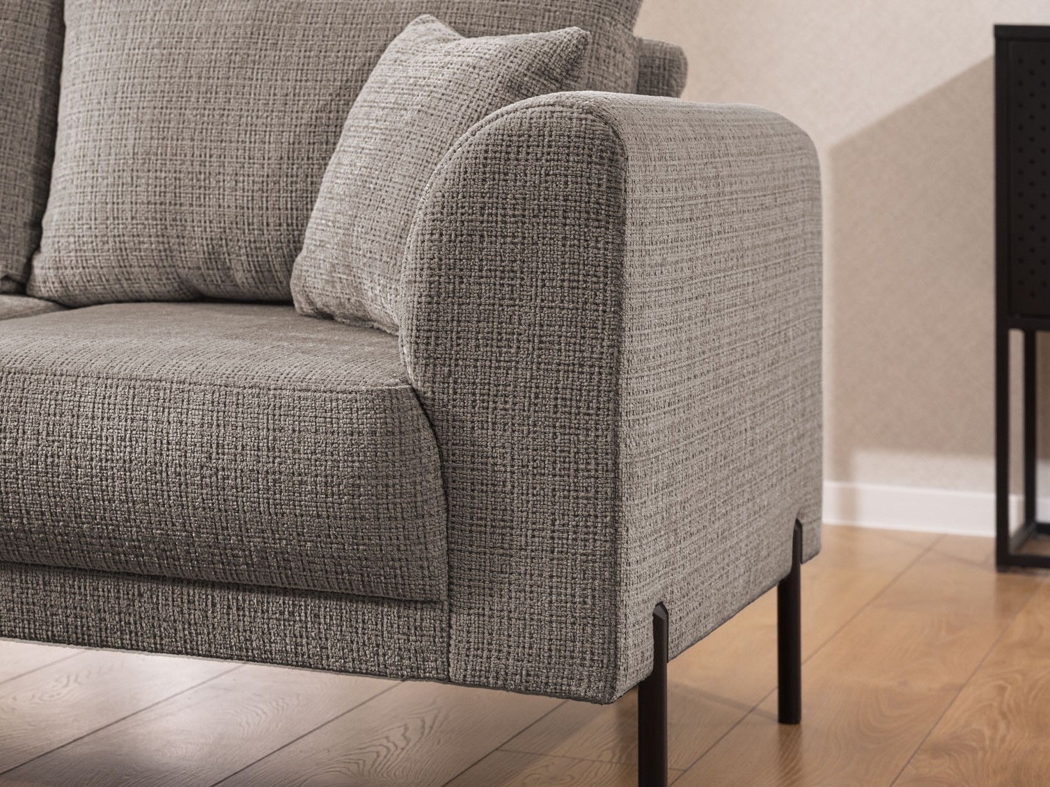 Mebel został obity wysokiej jakości tkaniną Cremona, która posiada wyrazisty, trójwymiarowy splot przypominający modne boucle. Jest to materiał niezwykle trwały i odporny na mechacenie, co w połączeniu z możliwością wyboru strony (prawa lub lewa) czyni narożnik Tilla produktem skrojonym pod indywidualne potrzeby. Szeroki wachlarz dostępnych tkanin pozwala na pełną zabawę teksturą, tworząc centralny punkt strefy relaksu.