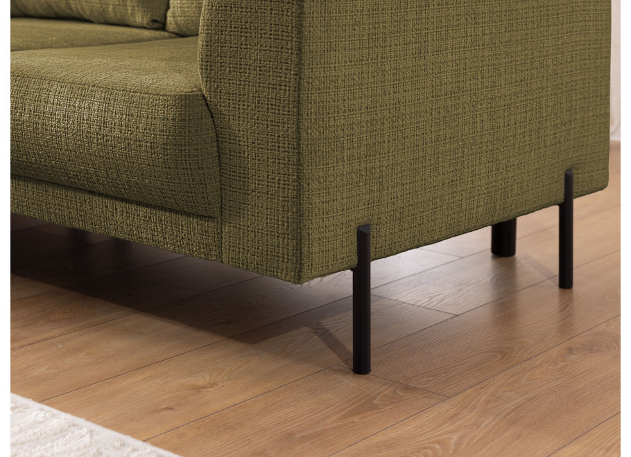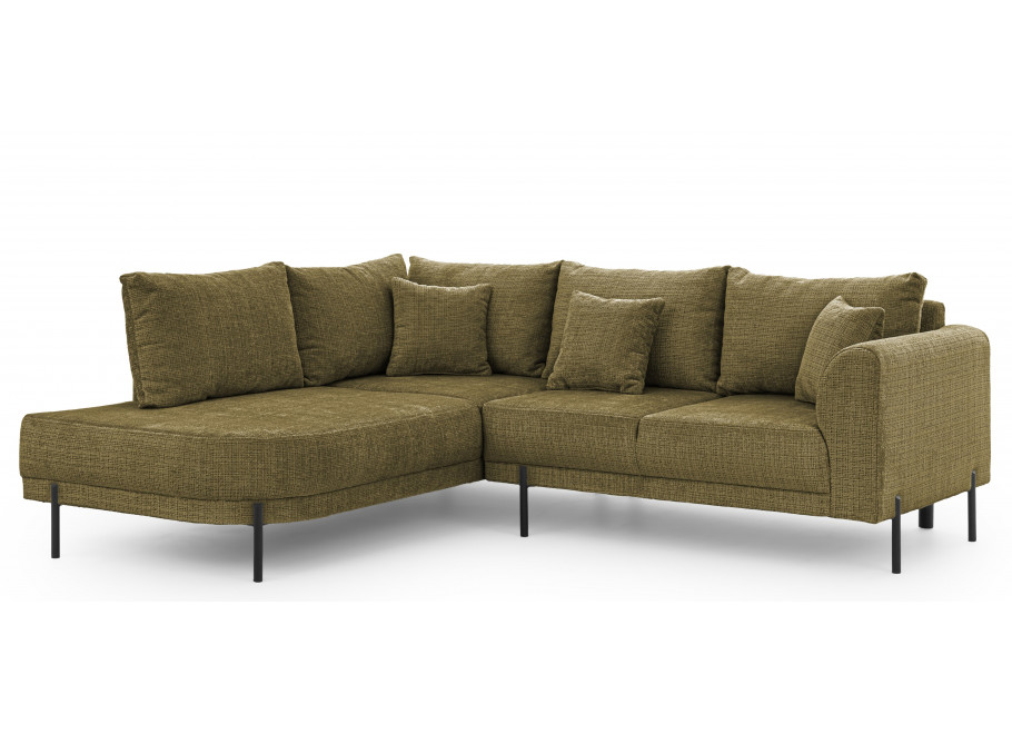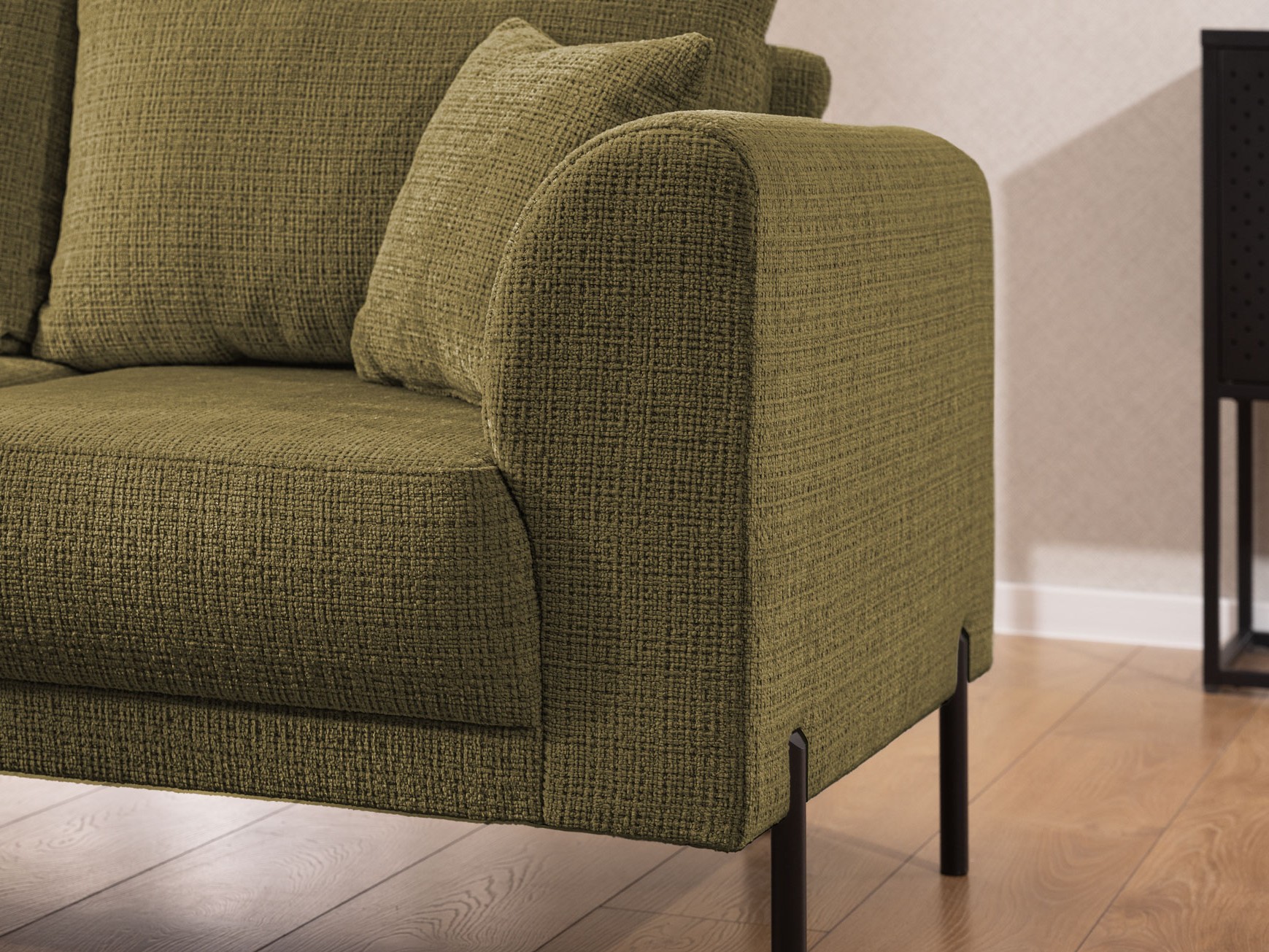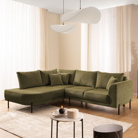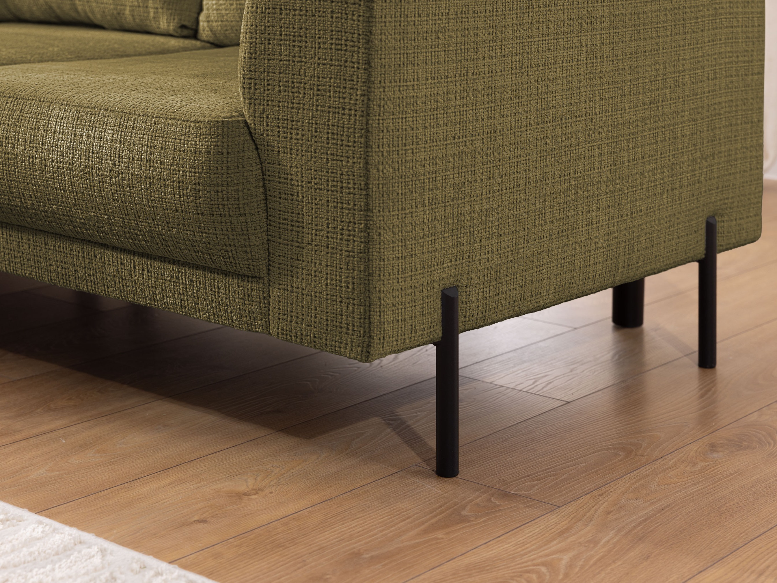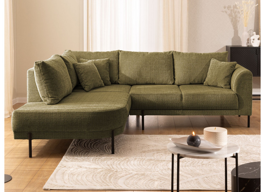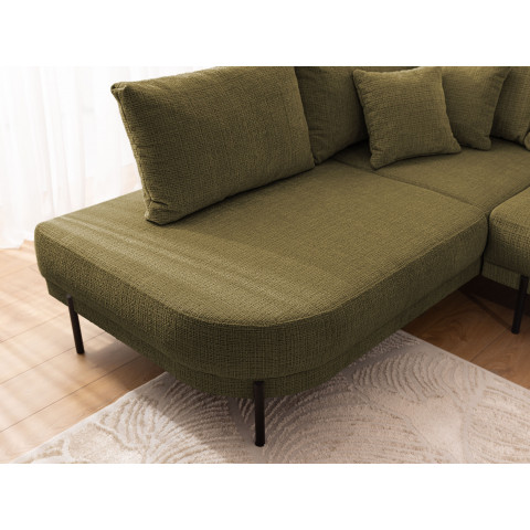 Odkryj nową definicję harmonii z narożnikiem Tilla, który w modnym, oliwkowym kolorze wnosi do salonu nutę spokoju i naturalnej elegancji. Projekt wyróżnia się zaokrągloną formą szezlonga, co nadaje mu nowoczesnego, organicznego charakteru. Mebel spoczywa na smukłych, wysokich nogach, które dodają konstrukcji finezji i umożliwiają swobodne korzystanie z odkurzaczy samojezdnych pod całą powierzchnią mebla. To połączenie stylu i funkcjonalności, które sprawdzi się w każdym nowoczesnym domu.