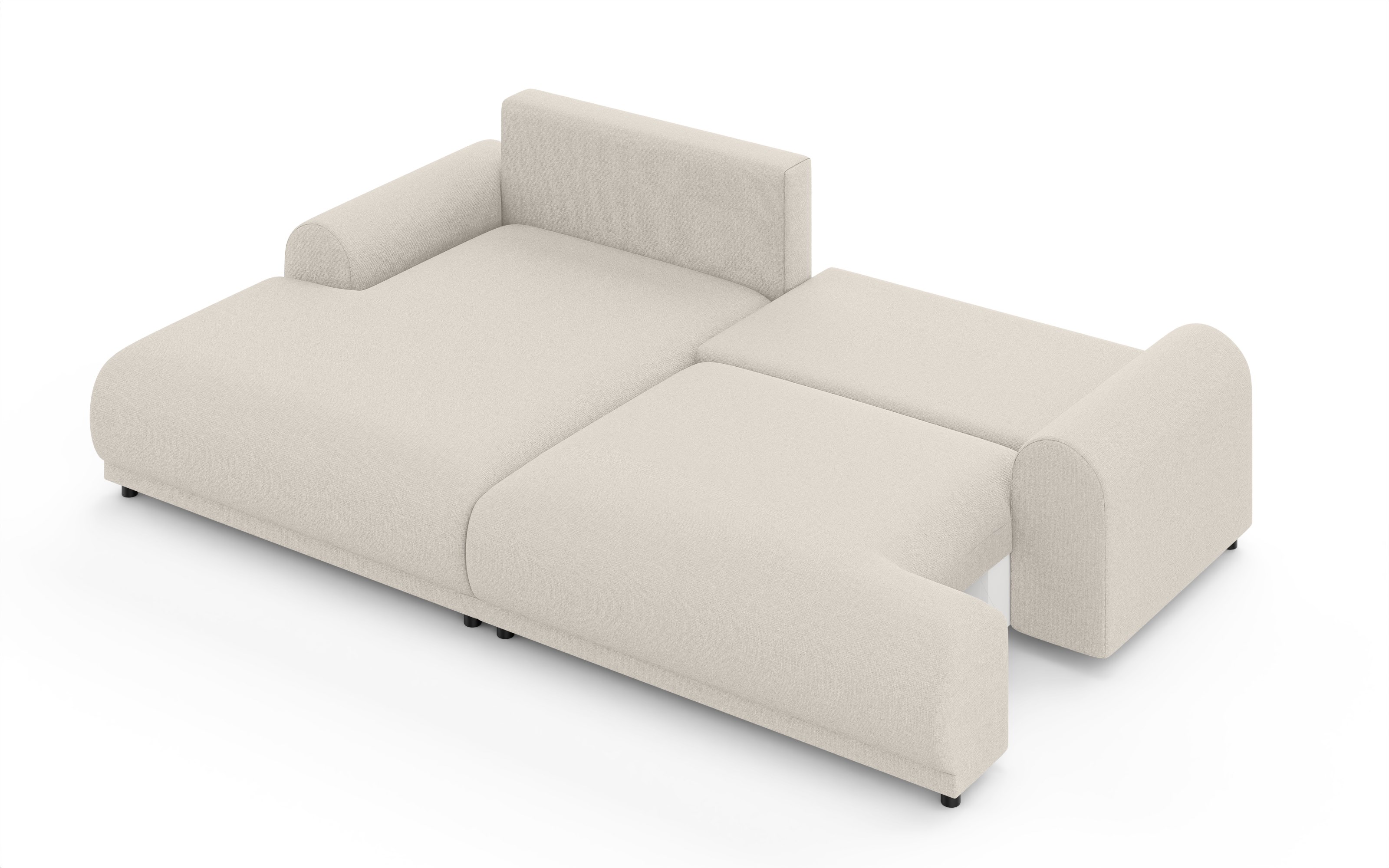 Fundamentem narożnika jest niezwykle solidna konstrukcja. Połączenie litego drewna, sklejki oraz wytrzymałych płyt (wiórowej, MDF oraz HDF) sprawia, że szkielet jest sztywny i odporny na upływ czasu. Wypełnienie mebla stanowi wysokoelastyczna pianka poliuretanowa, która znajduje się zarówno w siedzisku, jak i w oparciu. Zapewnia ona idealne podparcie kręgosłupa i dopasowuje się do sylwetki, gwarantując miękkość bez efektu zapadania się. Dużym atutem jest zintegrowana funkcja spania – prosty mechanizm pozwala w kilka chwil przekształcić strefę relaksu w pełnowymiarowe miejsce do noclegu. Wewnątrz bryły ukryto także pojemny schowek na pościel, co pozwala na sprytne zarządzanie przestrzenią w salonie i przechowywanie tekstyliów w zasięgu ręki.