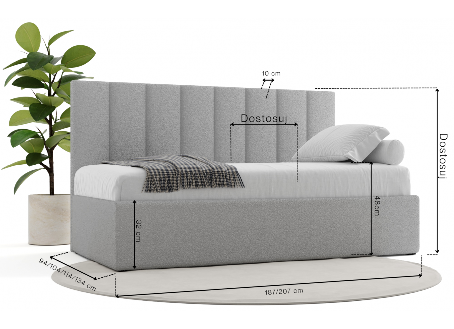 Wiemy, że każde pomieszczenie ma swoje unikalne wymagania, dlatego model Dakota to łóżko dla dzieci, które możesz w pełni spersonalizować według własnych potrzeb. Jako polski producent stawiamy na rzemieślniczą jakość i podejście typu łóżka na wymiar, oferując aż osiem wariantów wymiarów, od kompaktowych 80x180 po bardzo przestronne 120x200, które idealnie sprawdzą się jako łóżka młodzieżowe. Unikalną cechą tego modelu jest możliwość wyboru wysokości zagłówka spośród trzech opcji: 80 cm, 90 cm lub 100 cm, co pozwala dopasować mebel do skosów na poddaszu lub indywidualnych preferencji estetycznych. Projektując to łóżko dla dzieci, stawiamy na uniwersalną konstrukcję, która sprawia, że mebel ten doskonale odnajduje się w każdej aranżacji, stanowiąc centralny punkt sypialni. Dzięki przemyślanej formie, te stylowe łóżka z zagłówkiem pozwalają na swobodne ustawienie w dowolnym miejscu pokoju, zapewniając dziecku przytulny azyl do odpoczynku i zabawy.