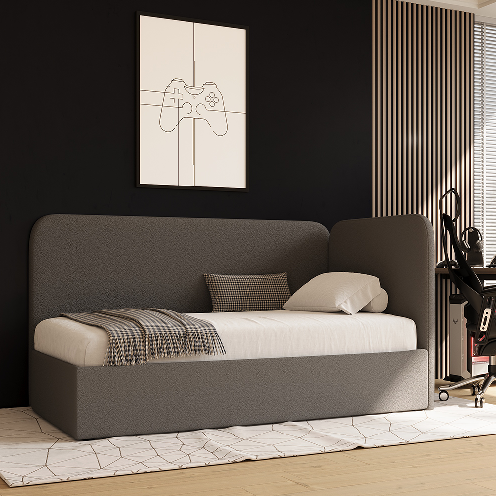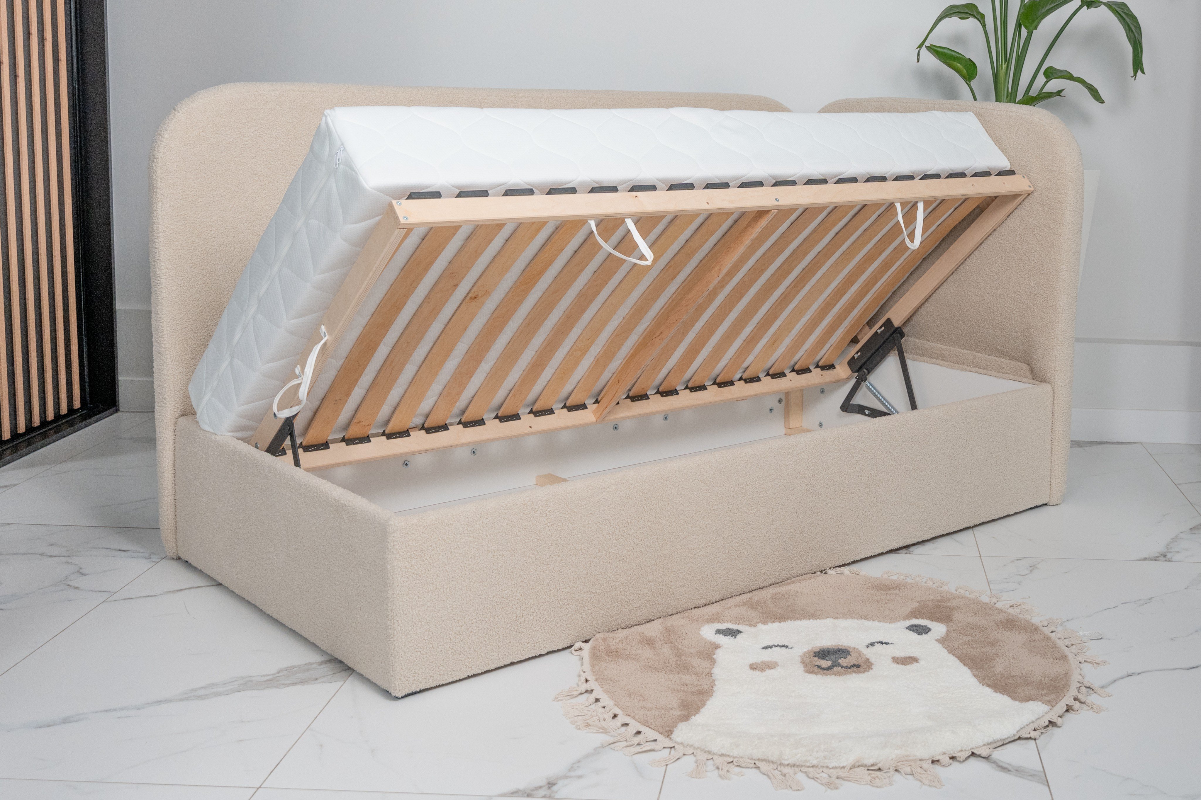 Kluczem do zdrowego kręgosłupa i energii na cały dzień jest odpowiednio dobrany materac, dlatego przygotowaliśmy trzy stopnie twardości dopasowane do różnych potrzeb. Materac H2 (kieszeniowy + lateks) zapewnia wyjątkowy komfort i elastyczność, H3 (kieszeniowy) to sprawdzona, standardowa średnia twardość, natomiast H4 (kieszeniowy + mata kokosowa) gwarantuje wyraźną twardość i doskonałą stabilność podparcia. Równie istotna jest warstwa wizualna, którą definiują nasze starannie dobrane tkaniny podzielone na trzy grupy stylowe. Możesz wybrać elegancki i miły w dotyku Welur, niezwykle modną i przytulną strukturę typu Owieczka/Bouclé (widoczną na zdjęciach) lub postawić na klasyczną i ekstremalnie trwałą Plecionkę, tworząc wymarzone łóżka dla chłopca lub modne łóżko dla nastolatek.