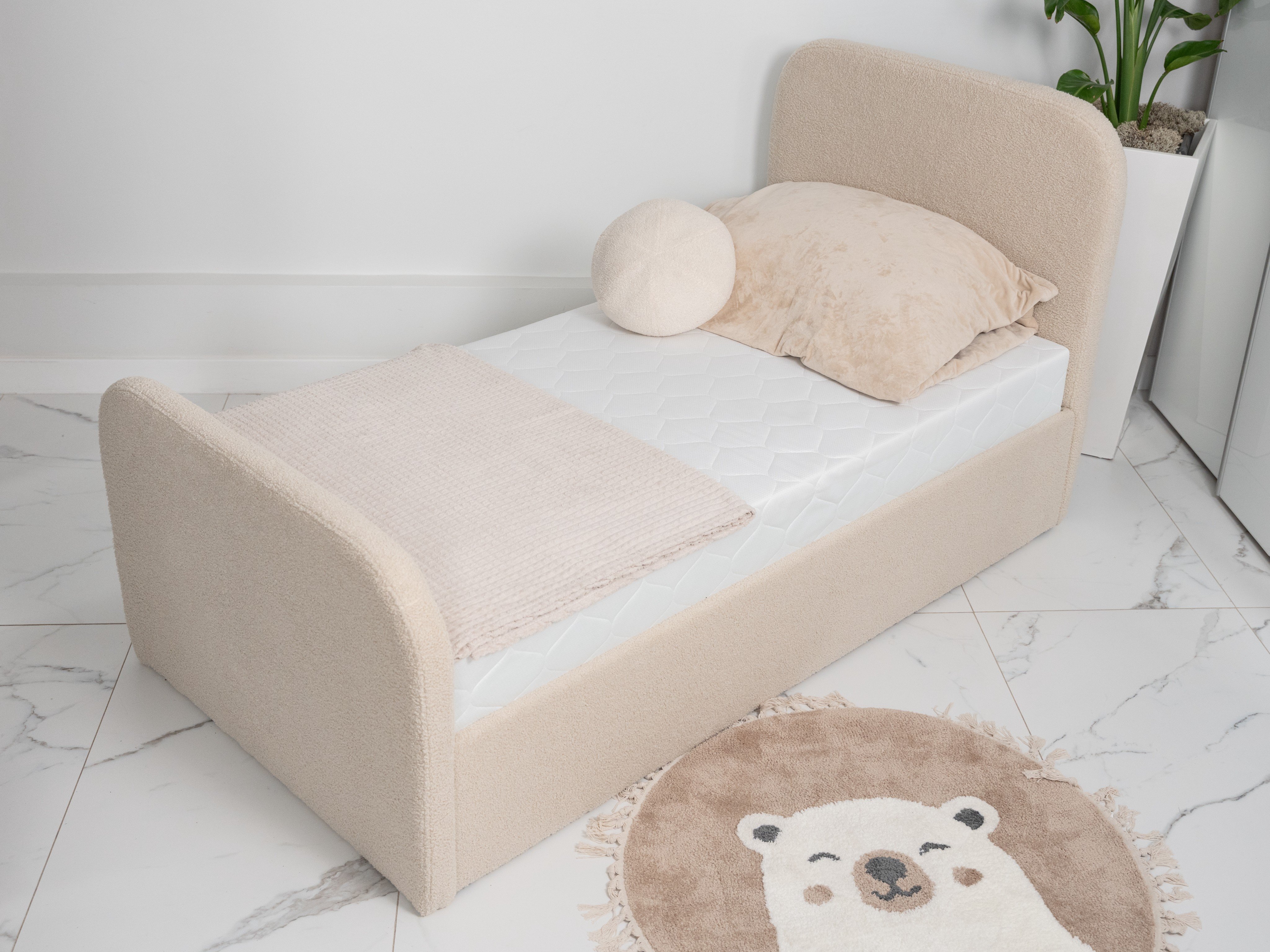 Kluczem do zdrowego kręgosłupa i energii na cały dzień jest odpowiednio dobrany materac, dlatego przygotowaliśmy trzy stopnie twardości dopasowane do różnych potrzeb. Materac H2 (kieszeniowy + lateks) zapewnia wyjątkowy komfort i elastyczność, H3 (kieszeniowy) to sprawdzona, standardowa średnia twardość, natomiast H4 (kieszeniowy + mata kokosowa) gwarantuje wyraźną twardość i doskonałą stabilność podparcia. Równie istotna jest warstwa wizualna, którą definiują nasze starannie dobrane tkaniny podzielone na trzy grupy stylowe. Możesz wybrać elegancki i miły w dotyku Welur, niezwykle modną i przytulną strukturę typu Owieczka/Bouclé (widoczną na zdjęciach) lub postawić na klasyczną i ekstremalnie trwałą Plecionkę, tworząc wymarzone łóżka dla chłopca lub modne łóżko dla nastolatek.