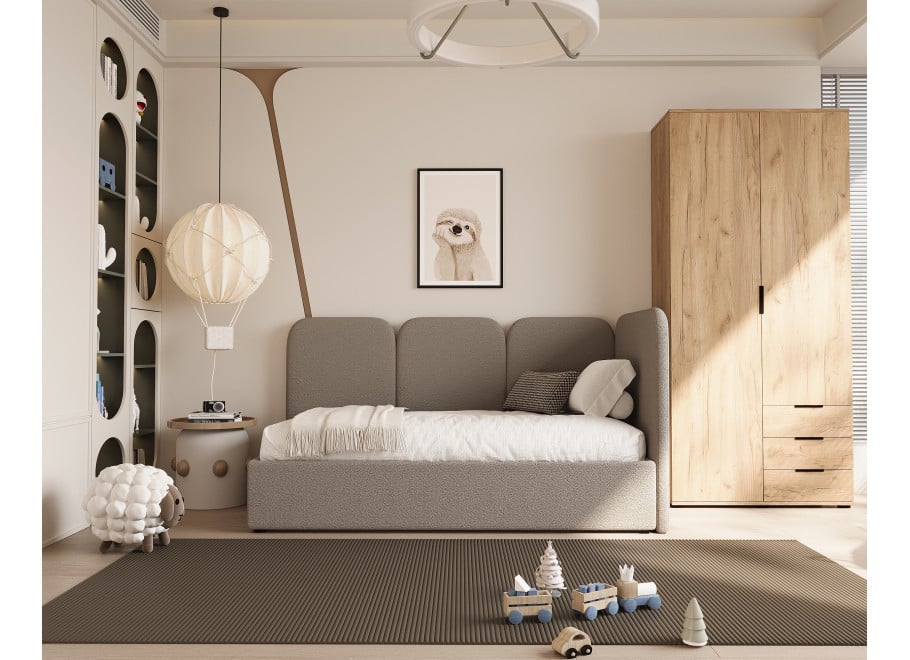 Stworzenie idealnej przestrzeni dla dorastającego dziecka to wyzwanie, przed którym staje każdy rodzic – jak połączyć potrzebę bezpieczeństwa i zdrowego snu z marzeniem o nowoczesnym, stylowym pokoju? Częstym problemem jest wybór mebla, który nie tylko zmieści się w dostępnej przestrzeni, ale też przetrwa lata intensywnego użytkowania, zachowując swój nienaganny wygląd. Łóżko tapicerowane dla dziecka Toronto to nasza odpowiedź na te potrzeby, oferująca przytulny design z charakterystycznymi, zaokrąglonymi panelami wezgłowia, które tworzą bezpieczną i miękką enklawę. Jako polski producent, kładziemy ogromny nacisk na lokalną produkcję i najwyższą jakość wykonania, co daje Ci pewność, że wybierasz produkt stworzony z dbałością o każdy detal, a jednocześnie w pełni podlegający Twojej personalizacji.
