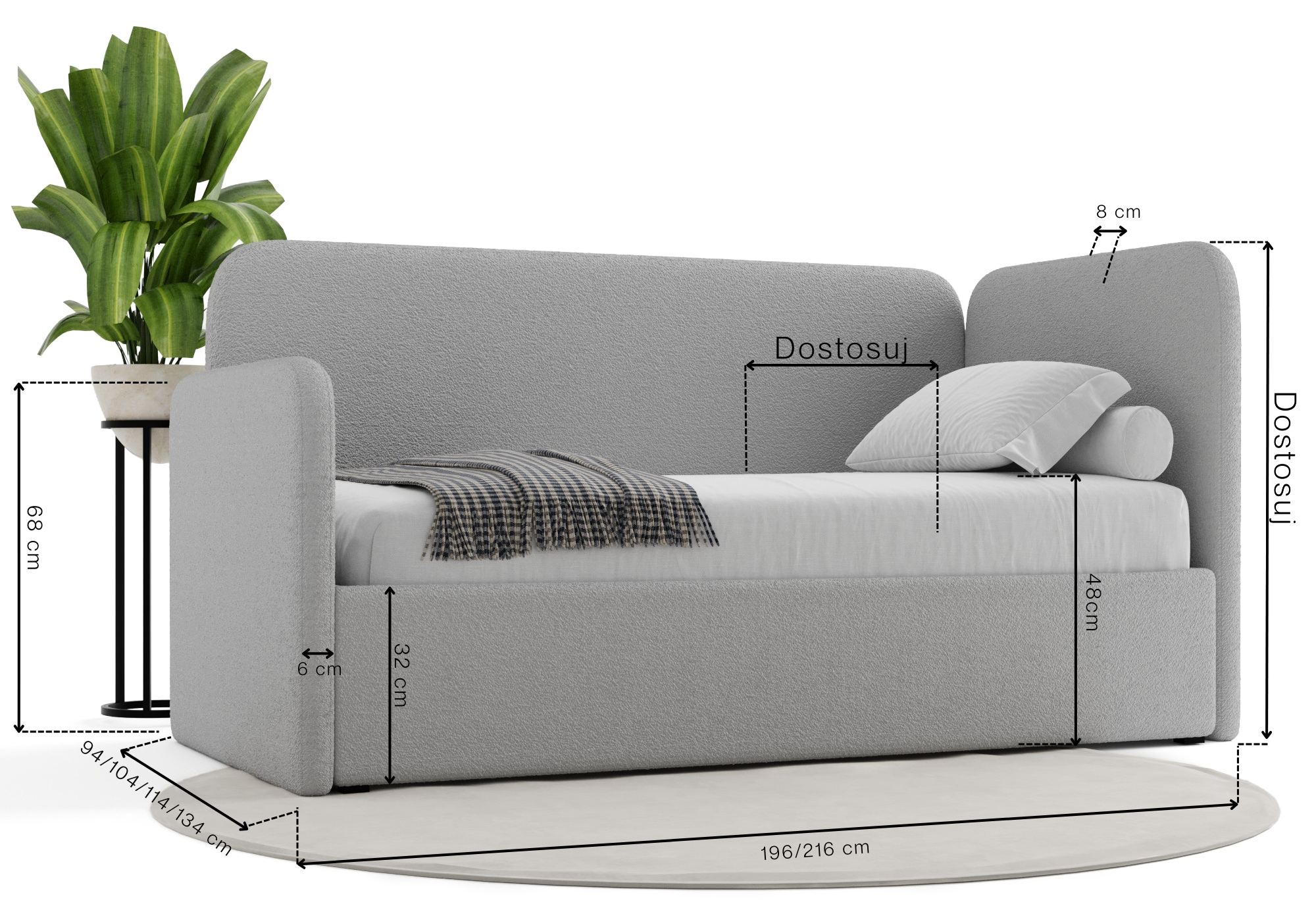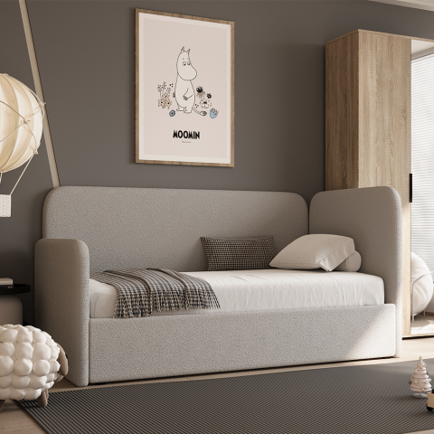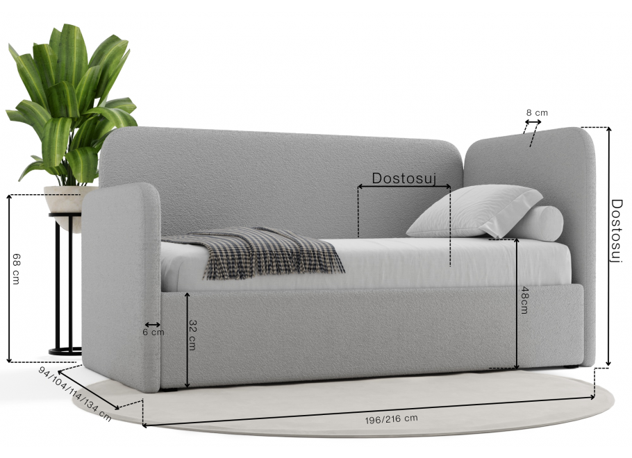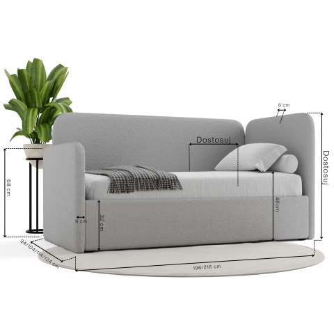 Fundamentem zdrowego odpoczynku jest odpowiednio dobrany materac, dlatego przygotowaliśmy trzy warianty, które zadbają o kręgosłup Twojego dziecka. Możesz wybrać materac H2 (kieszeniowy + lateks), który oferuje wyjątkowy komfort i elastyczność punktową, materac H3 (kieszeniowy) o uniwersalnej, średniej twardości, lub materac H4 (kieszeniowy + mata kokosowa) dla osób potrzebujących wyraźnej twardości i stabilnego podparcia. Wygląd łóżka dopasujesz dzięki starannie dobranym tkaninom z trzech grup: luksusowy i miękki Welur nada wnętrzu elegancji, trendowa Owieczka/Bouclé o puszystej strukturze (widoczna na zdjęciach) wprowadzi niezwykłą przytulność, a klasyczna Plecionka zapewni najwyższą trwałość na lata.