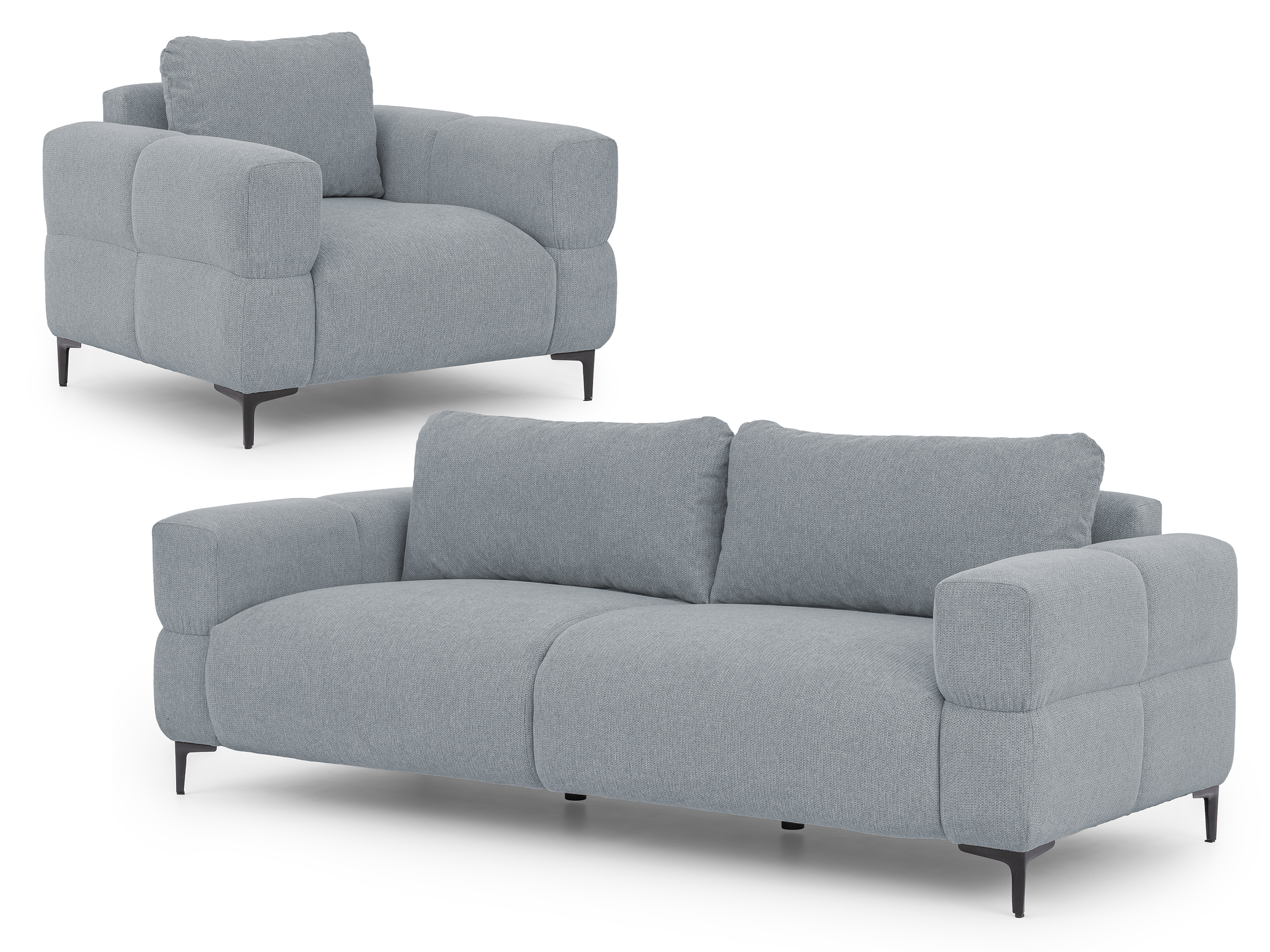 Marzysz o stworzeniu spójnej i luksusowej strefy wypoczynku, która stanie się sercem Twojego domu? Zestaw wypoczynkowy 3+1 z kolekcji Valentia to idealne rozwiązanie dla osób poszukujących balansu między nowoczesnym designem a bezkompromisową wygodą. W skład zestawu wchodzi przestronna sofa trzyosobowa oraz komfortowy fotel, co pozwala na stworzenie funkcjonalnej i niezwykle eleganckiej aranżacji, dopasowanej do rytmu życia Twojej rodziny. Ta stylowa kombinacja przyciąga wzrok obłymi kształtami i miękkimi liniami, które dzięki osadzeniu na smukłych konstrukcjach prezentują się niezwykle lekko. Jako meble na wysokich nóżkach, dodają one wnętrzu przestronności i są niezwykle praktyczne – bez trudu utrzymasz pod nimi porządek przy użyciu robota sprzątającego.