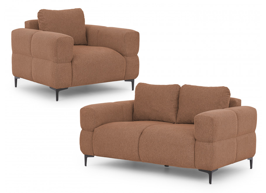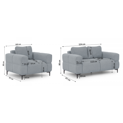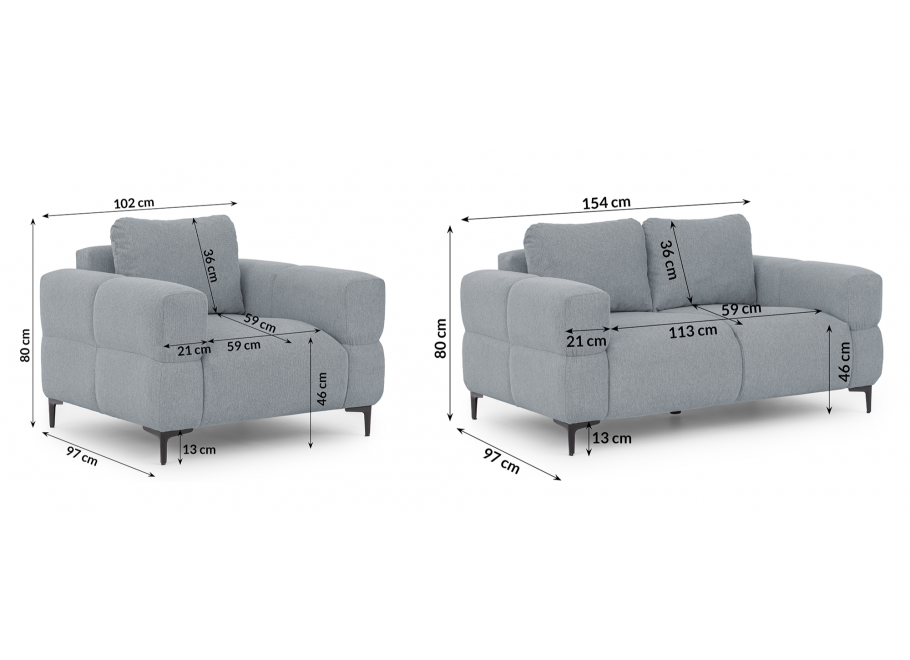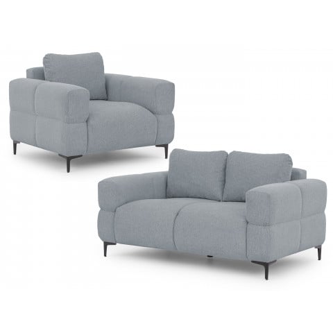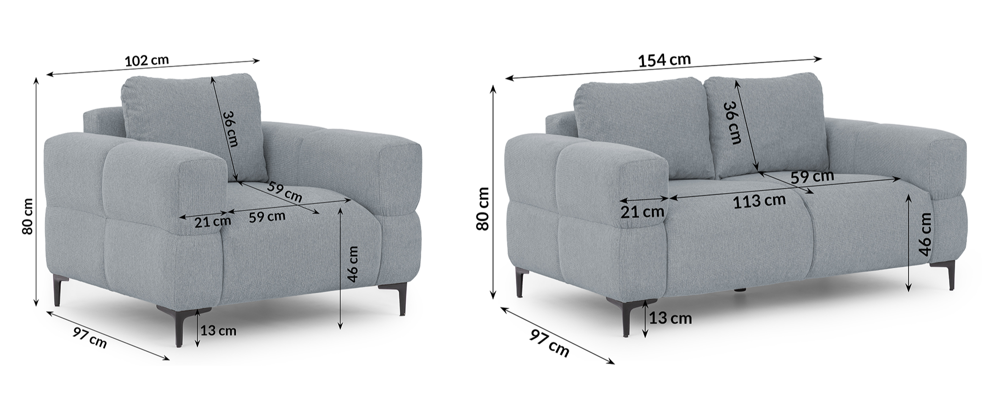 Każdy element zestawu został zaprojektowany z myślą o maksymalnym komforcie, jaki może zaoferować nowoczesna strefa wypoczynku. Siedziska wypełnia wysokoelastyczna pianka poliuretanowa oparta na wytrzymałych sprężynach falistych, co zapewnia idealny balans między miękkością a odpowiednim wsparciem ciała. Za wyjątkową przytulność odpowiadają luźne poduszki oparciowe wypełnione mieszanką pianki i silikonu, które pozwalają zatopić się w relaksie po długim dniu. Solidna konstrukcja sofy i fotela, wykonana z drewna litego, sklejki oraz płyt MDF i HDF, gwarantuje, że zestaw będzie służył Twojej rodzinie przez długie lata. Co ważne, tył mebli jest otapicerowany tkaniną, co daje pełną swobodę w ich ustawieniu – mogą one dumnie prezentować się nawet na środku otwartego salonu czy gabinetu.