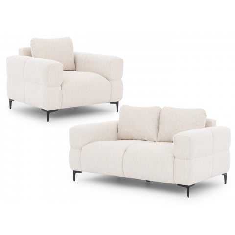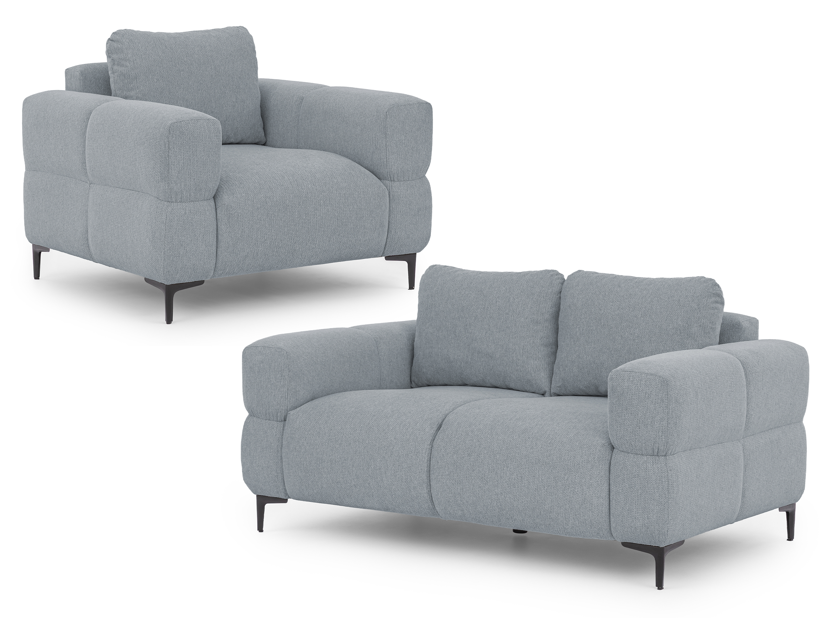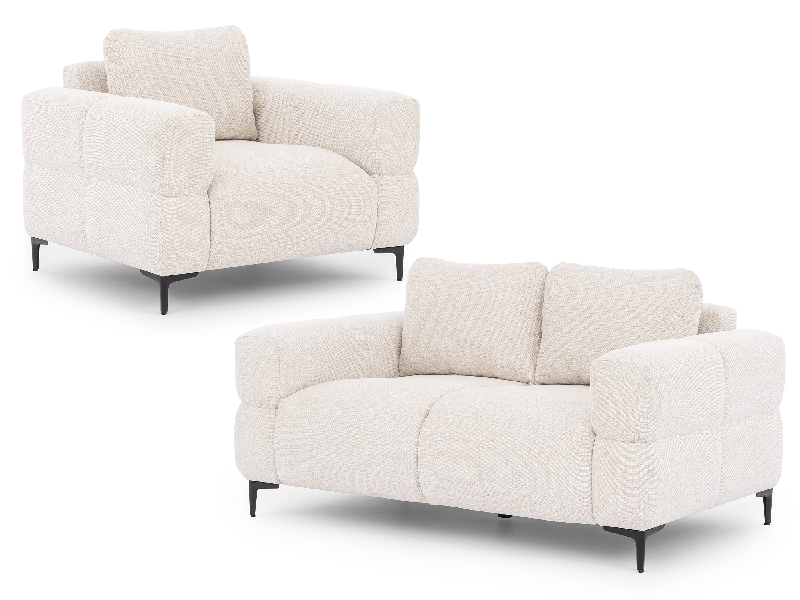 Marzysz o stworzeniu spójnej i luksusowej strefy wypoczynku, która stanie się sercem Twojego domu? Zestaw wypoczynkowy 2+1 z kolekcji Valentia to idealne rozwiązanie dla osób poszukujących harmonii między nowoczesnym designem a bezkompromisową wygodą, nawet w nieco mniejszych przestrzeniach. W skład zestawu wchodzi kompaktowa sofa dwuosobowa oraz dopasowany do niej fotel, co pozwala na stworzenie przytulnej, a zarazem niezwykle eleganckiej strefy relaksu. Ta stylowa kombinacja przyciąga wzrok obłymi kształtami i miękkimi liniami, które dzięki osadzeniu na smukłych konstrukcjach prezentują się niezwykle lekko. Jako meble na wysokich nóżkach, dodają one wnętrzu przestronności i są niezwykle praktyczne – bez trudu utrzymasz pod nimi porządek przy użyciu robota sprzątającego.