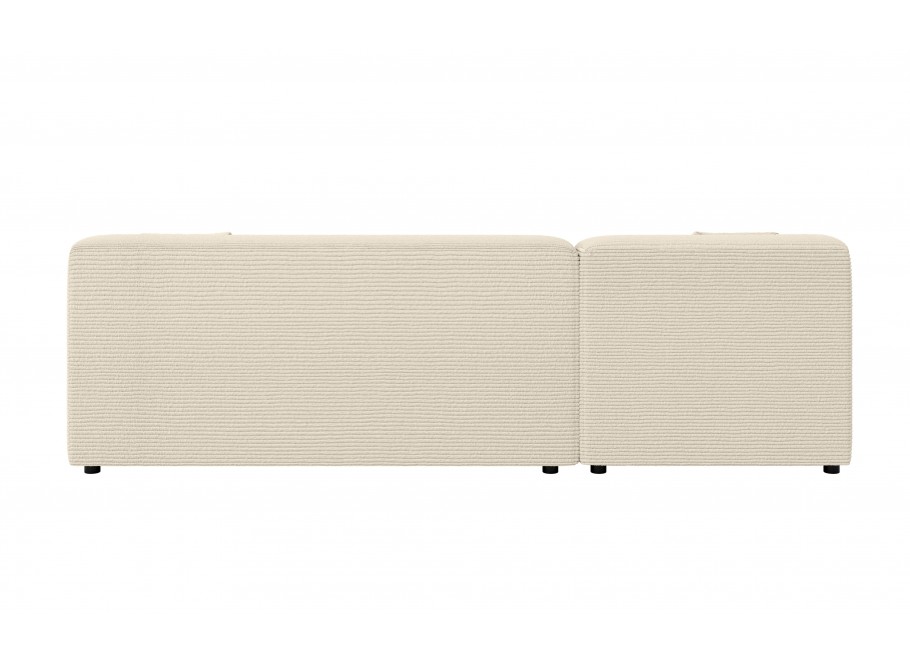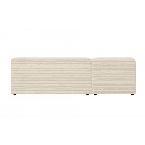Kluczowym elementem wykończenia jest tkanina Lincoln D – luksusowy sztruks o szerokich prążkach (ok. 10 mm), który nadaje powierzchni ciekawą, trójwymiarową strukturę. Ten beżowy materiał o wysokiej gramaturze 330g/m² jest nie tylko niezwykle miękki w dotyku, ale również odporny na ścieranie, promieniowanie UV oraz wchłanianie wody. Właściwości oddychające tkaniny oraz jej łatwość w czyszczeniu sprawiają, że narożnik zachowuje swój pierwotny blask przez długi czas. W zestawie z meblem znajdują się dwie poduszki dekoracyjne o wymiarach 40x40x15 cm, które wykonano z tego samego prążkowanego materiału, co dopełnia spójny wizerunek całości.