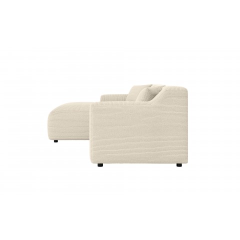 Nowoczesny narożnik Lotos w kolorze beżowym to propozycja, która łączy w sobie minimalistyczną estetykę z wyjątkową przytulnością. Jego cechą charakterystyczną są obłe kształty i zaokrąglone krawędzie, które nadają bryle lekkości i sprawiają, że mebel idealnie wpisuje się w aktualne trendy wnętrzarskie. Szerokie siedzisko oraz optymalnie wyprofilowane oparcie gwarantują wygodę na najwyższym poziomie, tworząc idealną strefę do codziennego odpoczynku. Niezwykle ważnym atutem jest funkcjonalność – strona narożnika jest do wyboru (prawa lub lewa), co pozwala na perfekcyjne dopasowanie mebla do układu Twojego salonu. Dzięki temu, że tył mebla jest w całości otapicerowany, narożnik prezentuje się estetycznie z każdej strony i może pełnić funkcję wolnostojącą.