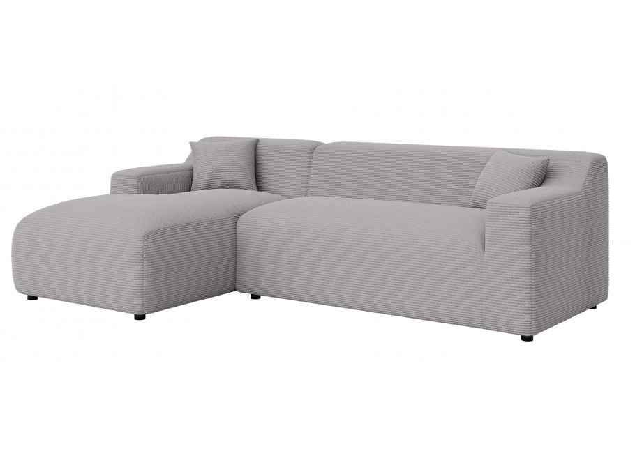 Zastosowana do obicia tkanina Lincoln D nadaje jasnej szarości zupełnie nowego wymiaru dzięki swojej strukturze szerokiego sztruksu (10 mm). Jest to materiał klasy premium o gramaturze 330g/m², który jest wyjątkowo miły dla skóry i oddychający. Dla użytkowników kluczowa będzie jego odporność na wchłanianie wody oraz promieniowanie UV, co w przypadku jasnego odcienia jest gwarancją zachowania estetycznego wyglądu przez długie lata. Narożnik jest łatwy w czyszczeniu i odporny na codzienne użytkowanie.