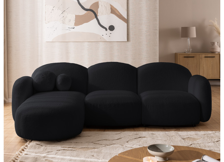 Ten nowoczesny narożnik to idealne rozwiązanie dla miłośników odważnego designu, którzy nie chcą rezygnować z wygody. Jego unikalna, obła sylwetka nawiązuje do organicznych form spotykanych w naturze, co pozwala mu stać się centralnym punktem każdej aranżacji. Dzięki miękkim liniom oparć i zaokrąglonym bokom mebel prezentuje się niezwykle lekko, mimo swojej solidnej konstrukcji. Wybierając ten model w czarnym kolorze, zyskujesz element wyposażenia, który dodaje wnętrzu elegancji, szlachetności oraz nowoczesnego sznytu.