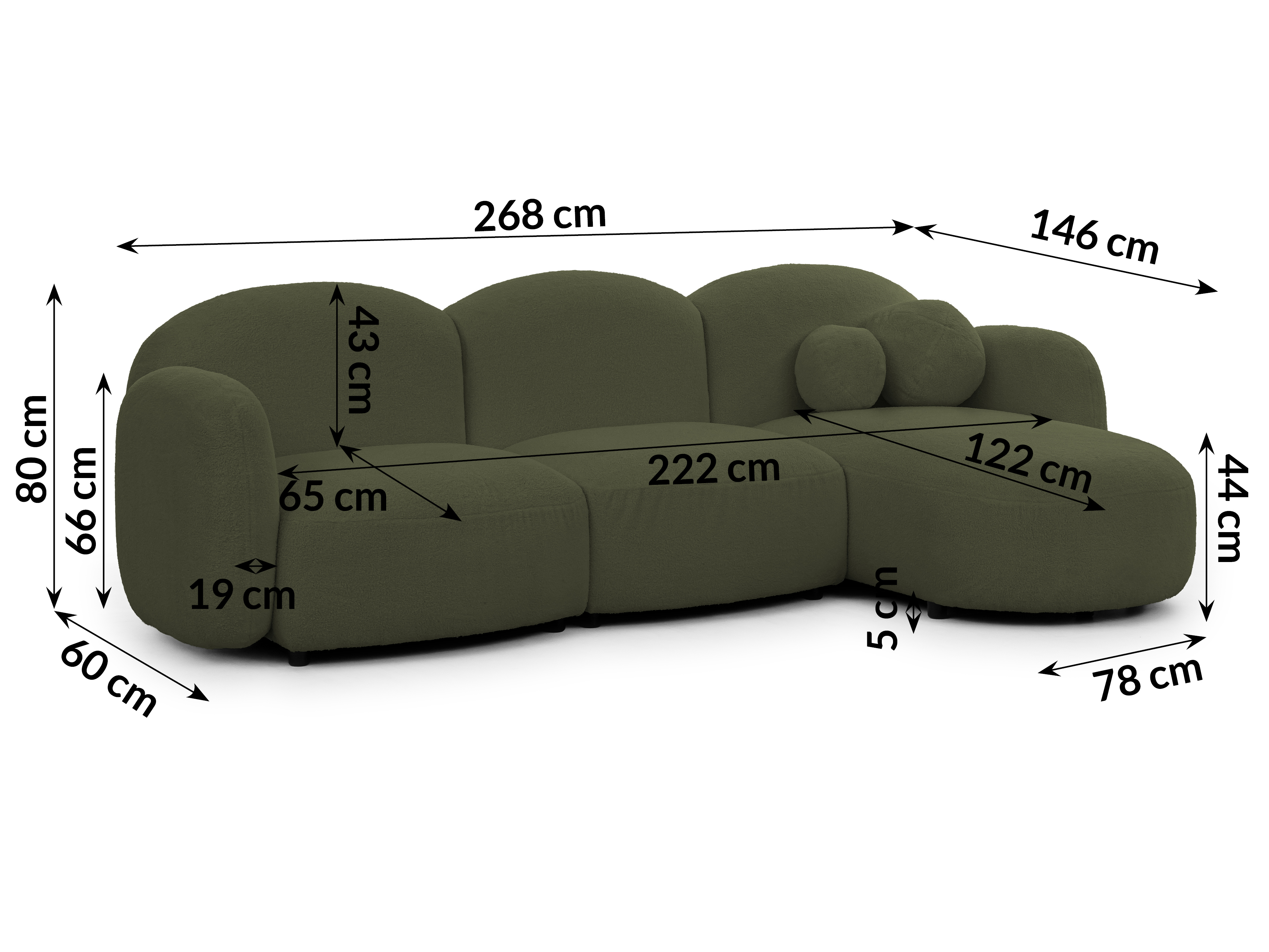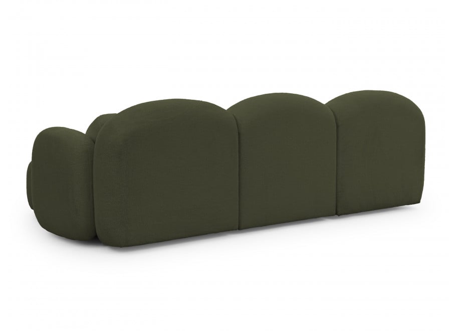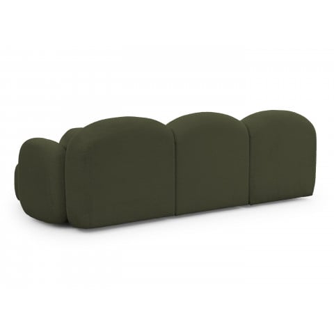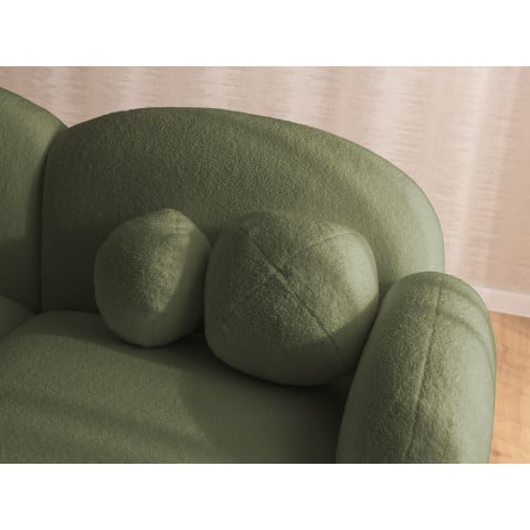 Ciemna zieleń, często kojarzona z barwą butelkową lub leśną, nadaje obłej bryle narożnika niesamowitej głębi. W tym kolorze bąbelkowa struktura mebla staje się bardziej zdefiniowana i trójwymiarowa. To mebel, który „robi wnętrze” – przyciąga wzrok i staje się głównym punktem odniesienia w aranżacji.