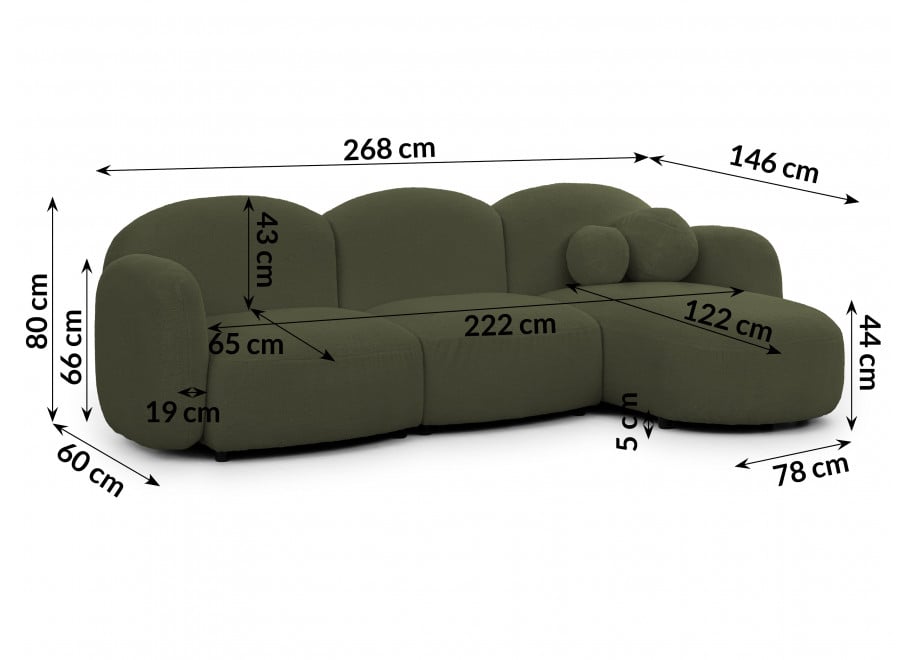 Narożnik Bloop w głębokim, ciemnozielonym odcieniu to wybór dla osób, które chcą nadać swojemu wnętrzu szlachetnego charakteru i wyrazistego stylu. Ta wersja kolorystyczna zmienia postrzeganie mebla – z lekkiej „chmurki” staje się on eleganckim, luksusowym sercem salonu.