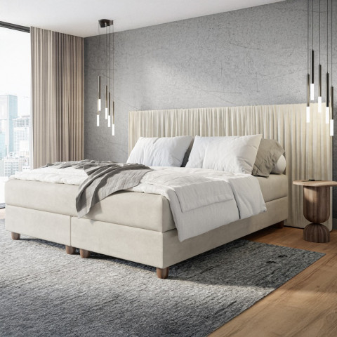 Odkryj łóżko kontynentalne Cascada, które redefiniuje pojęcie nowoczesnej sypialni. Ten wyjątkowy model łączy w sobie rzemieślniczą precyzję wykonania z unikalnym designem, którego znakiem rozpoznawczym jest artystycznie marszczone wezgłowie. Jeśli szukasz mebla, który jest nie tylko wygodny, ale stanowi główną dekorację wnętrza, Cascada jest stworzona dla Ciebie.