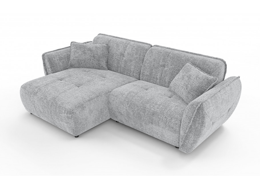 Narożnik Lumi w odcieniu szarym to propozycja stworzona dla osób ceniących ponadczasową elegancję ujętą w nowoczesną, niską i obłą formę. Szarość to kolor niezwykle uniwersalny i wdzięczny aranżacyjnie – w połączeniu z grubą, trójwymiarową fakturą tkaniny tworzy bazę, która doskonale odnajdzie się w każdym wnętrzu: od surowych, betonowych loftów po przytulne mieszkania w stylu skandynawskim czy nowojorskim. Unikalność tego projektu polega na zastosowaniu stałego oparcia, które płynnie przechodzi w szerokie, mięsiste boczki o zaokrąglonych krawędziach. Tworzy to spójną, harmonijną bryłę o niskim profilu, która nie przytłacza wnętrza, a wręcz dodaje mu wizualnej lekkości. Brak luźnych poduch oparciowych to ukłon w stronę nowoczesnego minimalizmu i funkcjonalności – mebel zawsze zachowuje swój pierwotny, geometryczny kształt, pozostając gotowym do ugoszczenia domowników w każdej chwili bez zbędnych przygotowań.