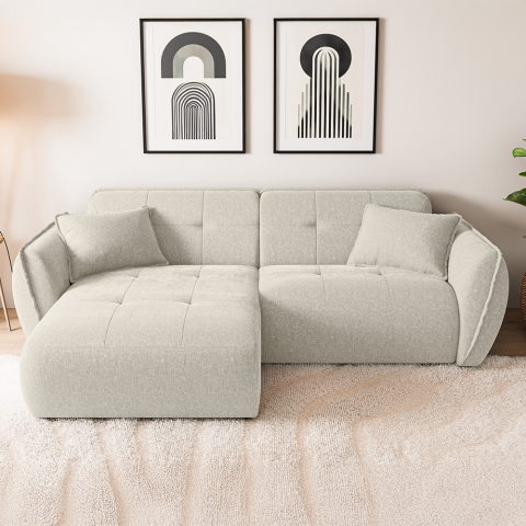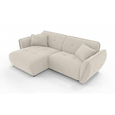 Narożnik Lumi w odcieniu kremowy beż to mebel, który staje się centralnym punktem domowej strefy relaksu, redefiniując pojęcie nowoczesnej przytulności. Jego projekt bazuje na niezwykle modnej, niskiej i obłej bryle, która doskonale wpisuje się w najświeższe trendy wnętrzarskie, takie jak japandi, styl nowoczesny czy soft loft. W tym wariancie postawiono na eleganckie, zintegrowane oparcie, które płynnie łączy się z korpusem mebla, tworząc spójną i harmonijną sylwetkę. Taka konstrukcja nie tylko podkreśla architektoniczny charakter narożnika, ale również sprawia, że mebel zawsze prezentuje się nienagannie i schludnie. Wyjątkowy charakter bryły akcentują subtelne wciągi na siedzisku oraz oparciu, które nadają meblowi wizualnej puszystości. Aby zapewnić idealne dopasowanie do Twojego salonu, strona narożnika (lewa lub prawa) pozostaje do Twojego wyboru.