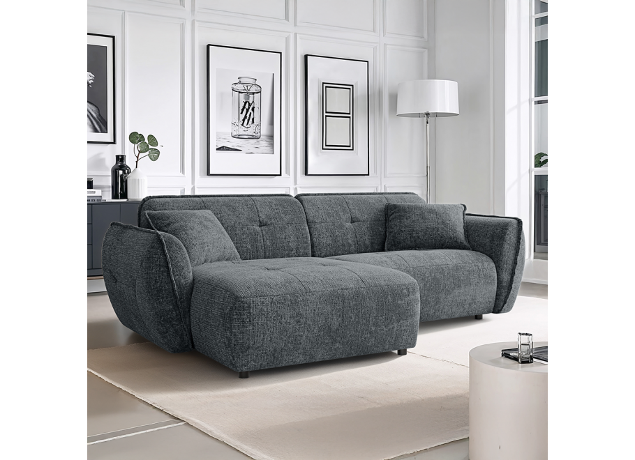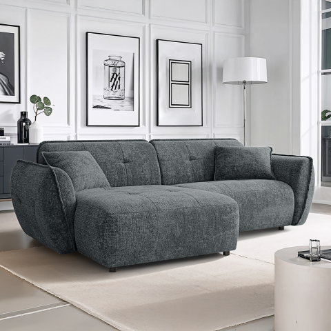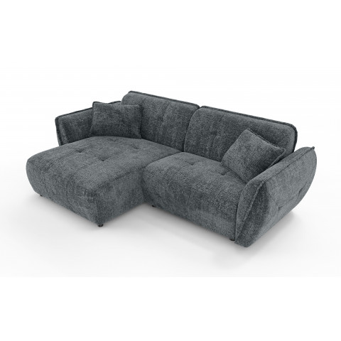 Narożnik Lumi w odcieniu szarym to propozycja stworzona dla osób poszukujących idealnego balansu między surowym minimalizmem a przytulnym komfortem. Szarość, jako barwa niezwykle uniwersalna i ponadczasowa, w połączeniu z grubą, trójwymiarową fakturą tkaniny, tworzy bazę, która doskonale odnajdzie się w każdym nowoczesnym wnętrzu – od loftowych apartamentów z betonowymi akcentami, po jasne i przestronne salony w stylu skandynawskim czy nowojorskim. Unikalność tego projektu polega na zastosowaniu charakterystycznej, niskiej i obłej bryły, która rezygnuje z ostrych kantów na rzecz płynnych, organicznych linii. W przeciwieństwie do wielu standardowych modeli, narożnik Lumi posiada stałe, zintegrowane oparcie, które płynnie przechodzi w szerokie, zaokrąglone boczki. Takie rozwiązanie gwarantuje niezmienną formę mebla – narożnik zawsze prezentuje się nienagannie i schludnie, eliminując potrzebę ciągłego poprawiania luźnych poduch oparciowych.