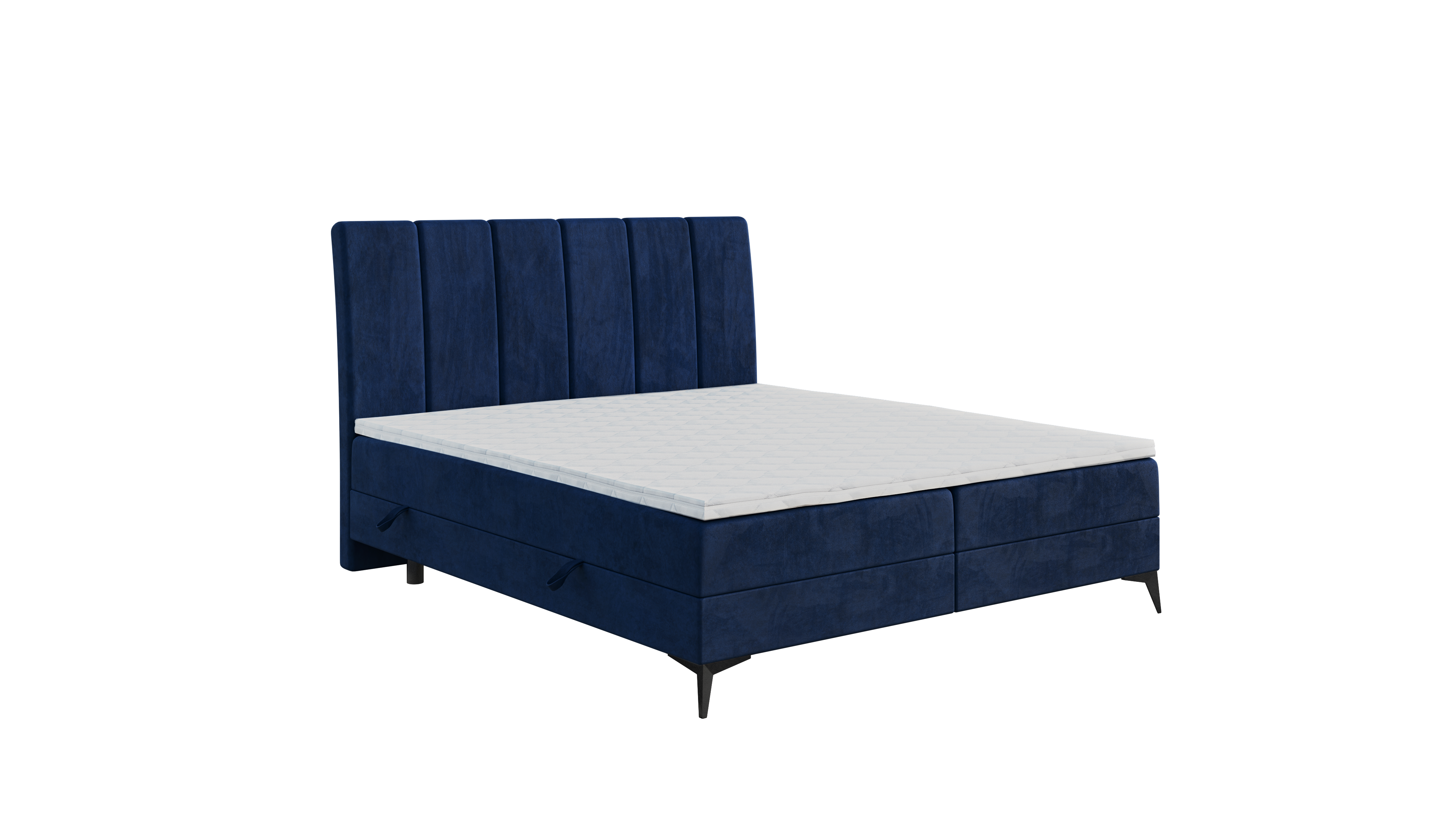 Konstrukcja spoczywa na stylowych, czarnych metalowych nóżkach o wysokości 13 cm. Takie rozwiązanie nadaje łóżku lekkości i jest niezwykle praktyczne – pozwala na swobodne korzystanie z robotów sprzątających, co ułatwia utrzymanie nienagannego porządku pod całą powierzchnią mebla.
