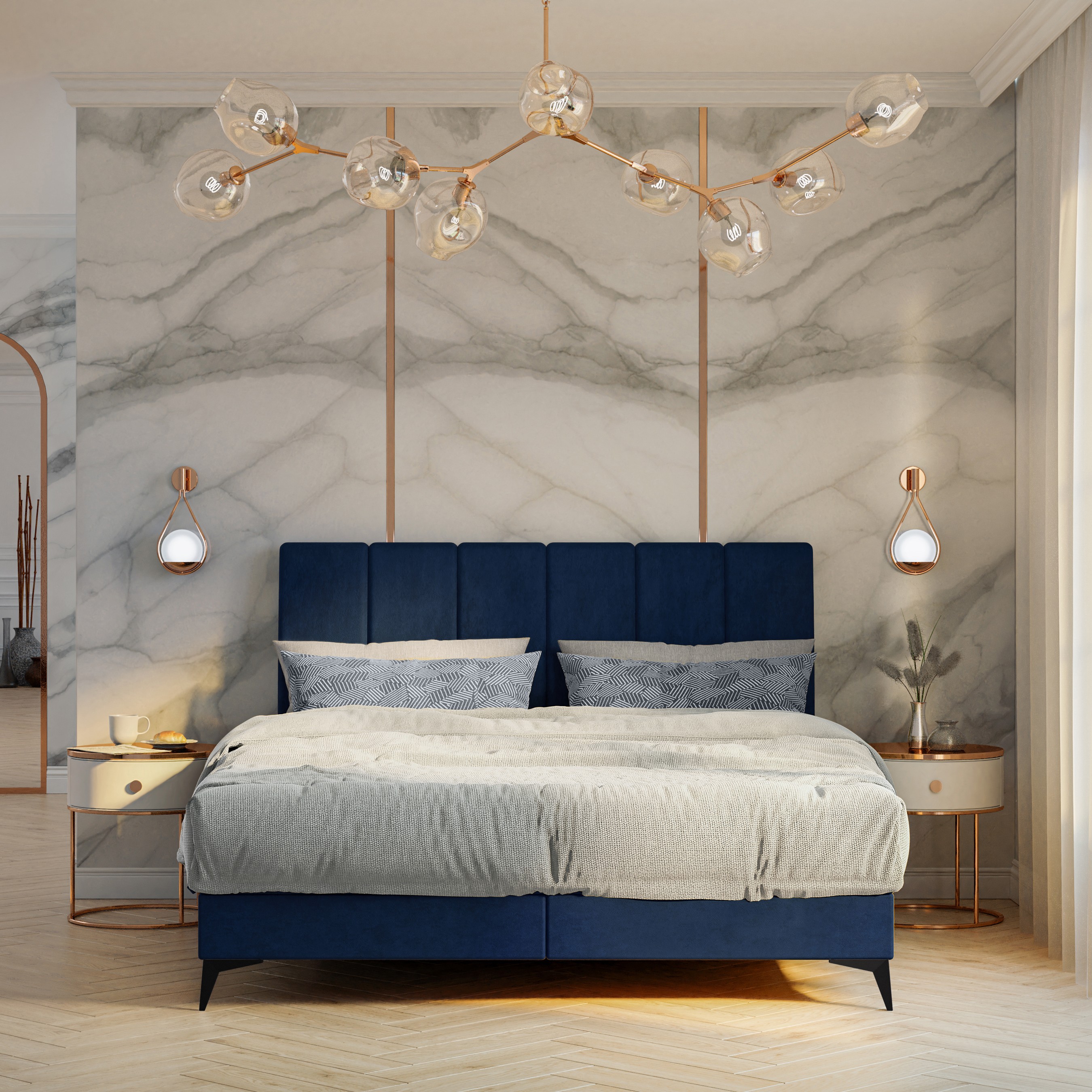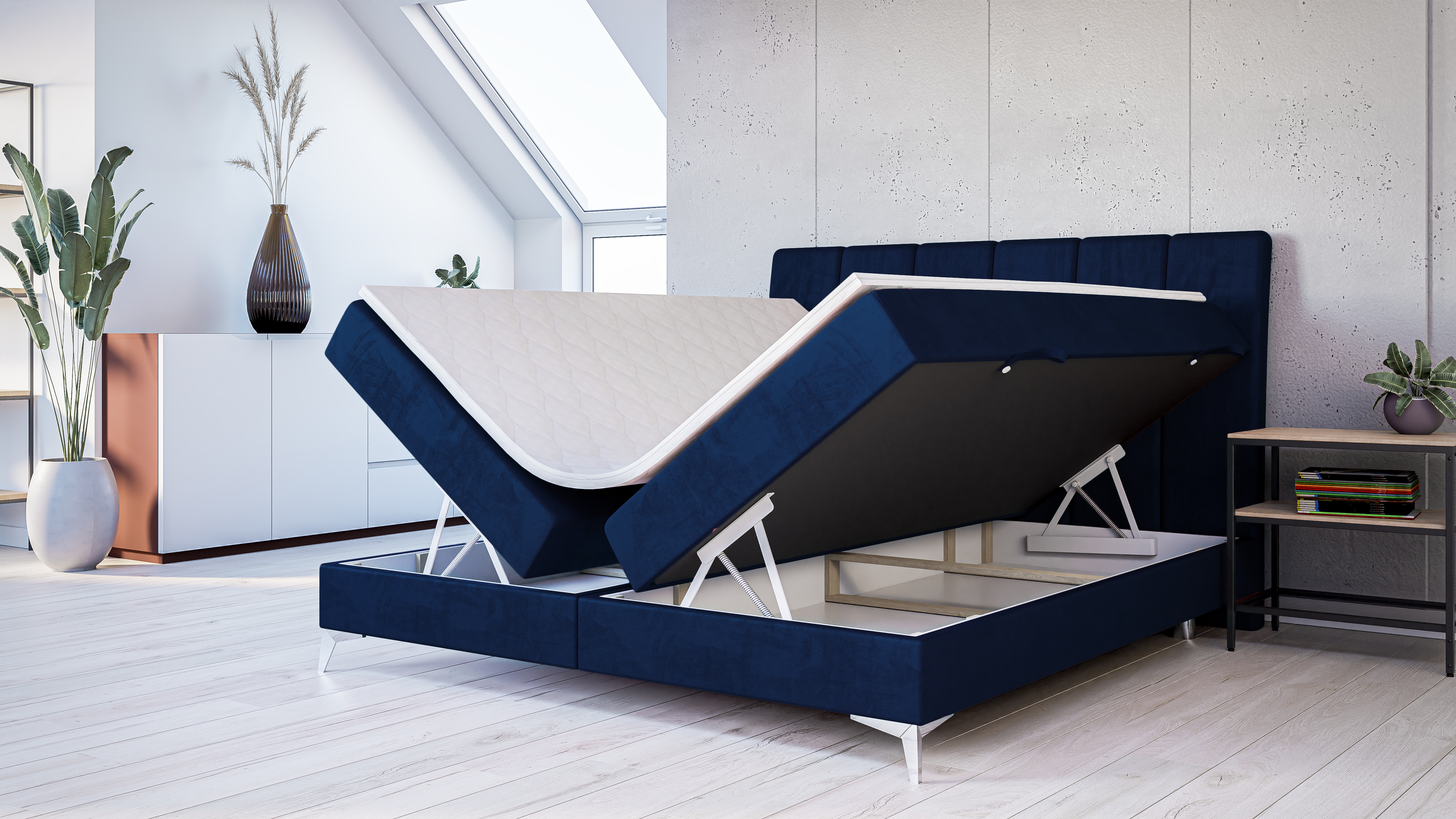 Łóżko kontynentalne Lumia to propozycja dla osób poszukujących bezkompromisowego komfortu i nowoczesnej estetyki. Ten elegancki mebel tapicerowany został zaprojektowany z myślą o maksymalnej funkcjonalności, oferując nie tylko luksusową strefę wypoczynku, ale także inteligentny system przechowywania. Dzięki smukłej sylwetce i dopracowanym detalom, model Lumia idealnie wpisuje się w aranżacje typu loft, nowoczesne sypialnie oraz wnętrza w stylu glamour.