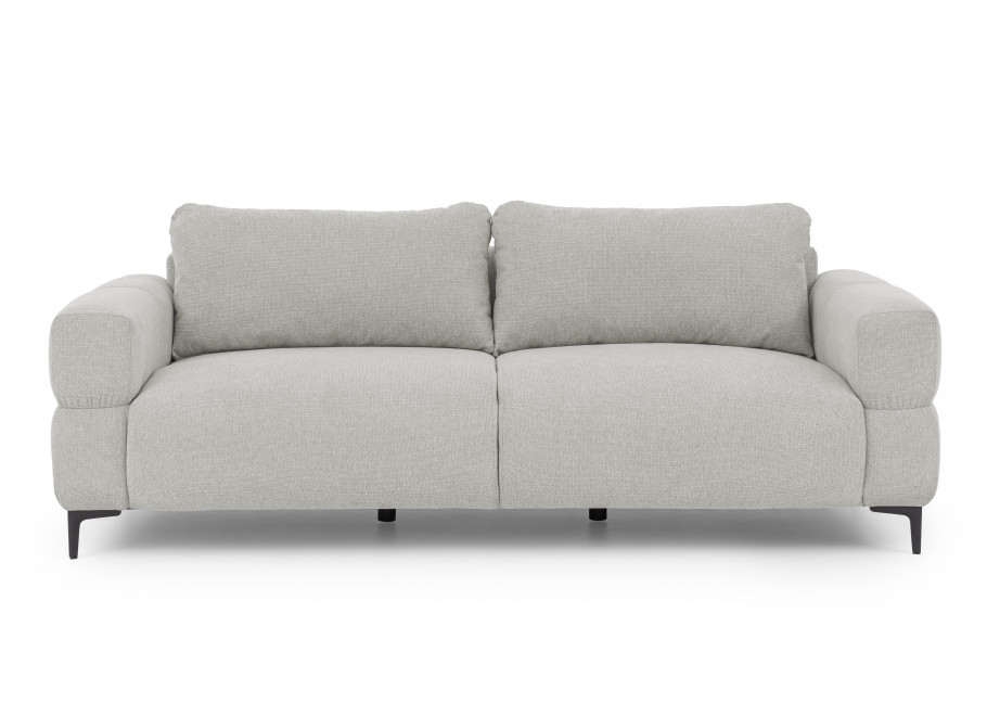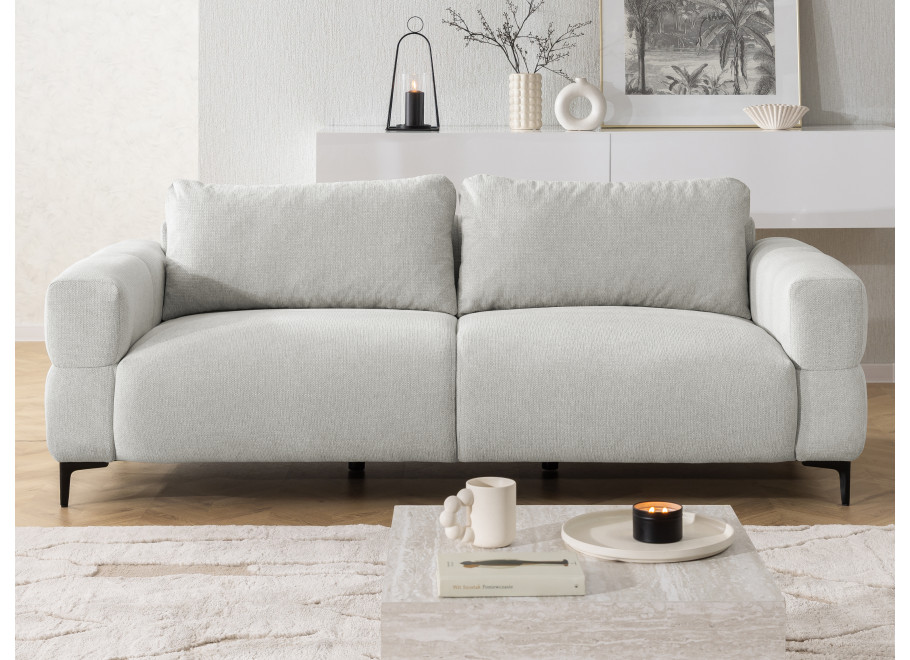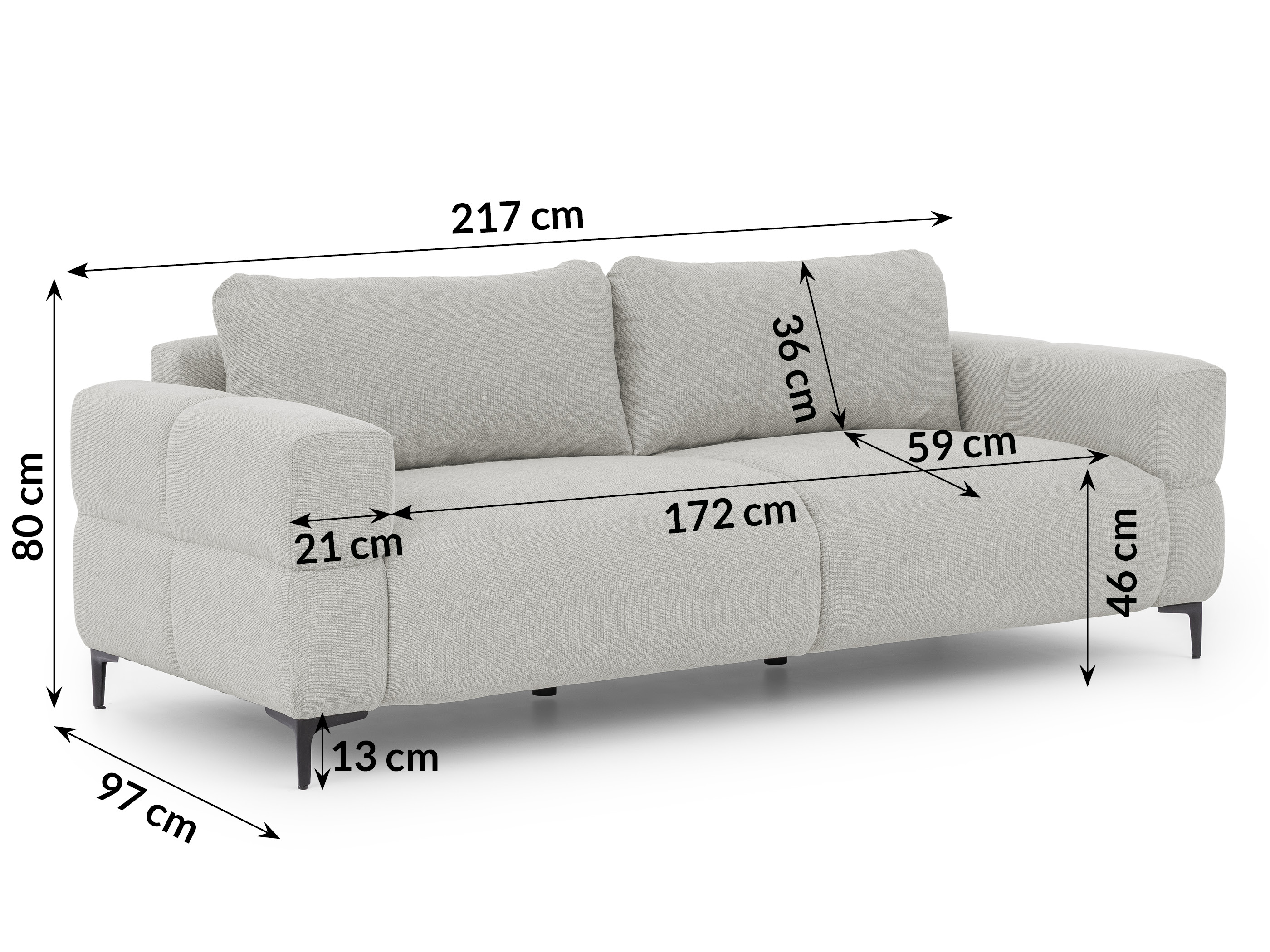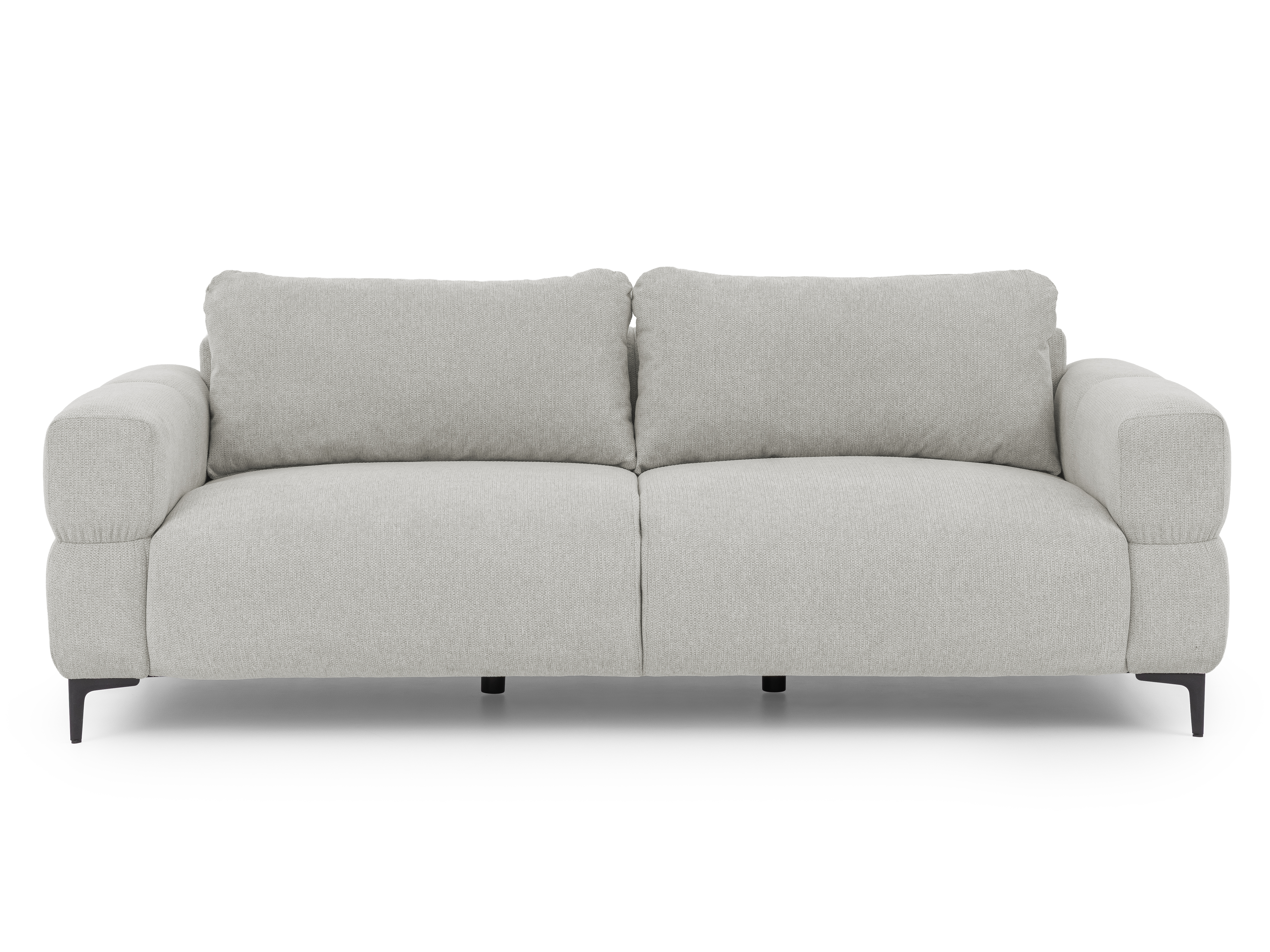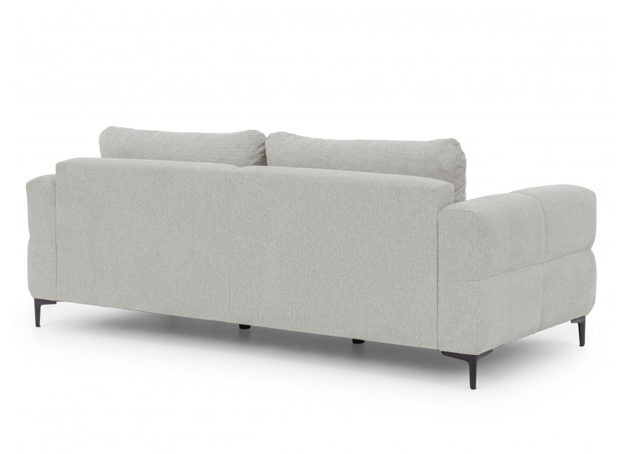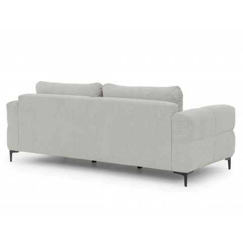 Za komfort odpowiada precyzyjnie zaprojektowane wypełnienie. Wysokoelastyczna pianka poliuretanowa w duecie ze sprężynami falistymi tworzy siedzisko, które jest wyjątkowo wygodne i nie ulega trwałym odkształceniom nawet przy intensywnym użytkowaniu. Oparcie w formie luźnych poduszek wypełnionych mieszanką pianki i silikonu gwarantuje ergonomiczne wsparcie kręgosłupa i poczucie miękkości. Solidny stelaż wykonany z drewna litego, sklejki oraz płyt HDF i MDF jest gwarancją stabilności. Ponieważ tył mebla jest w całości otapicerowany, sofę można ustawić w dowolnym miejscu salonu, co pozwala na dużą swobodę w projektowaniu wnętrza.