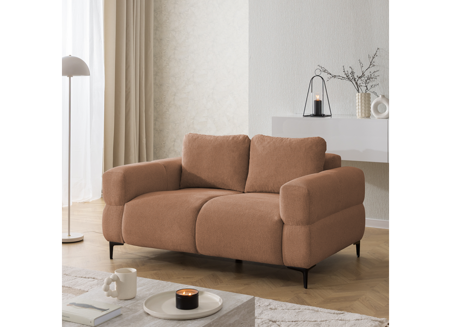Wnętrze sofy zostało zaprojektowane z myślą o najbardziej wymagających użytkownikach. Połączenie wysokoelastycznej pianki poliuretanowej z wytrzymałymi sprężynami falistymi sprawia, że siedzisko jest niezwykle wygodne i zachowuje swój pierwotny kształt przez lata. Relaks wspomagają luźne poduszki oparciowe (mieszanka piankowo-silikonowa), które dopasowują się do krzywizny pleców. Solidność mebla opiera się na ramie z drewna litego, sklejki oraz płyt wiórowych i HDF. Ponieważ tył mebla jest otapicerowany, sofa w kolorze ceglastym może stanowić centralną wyspę w Twoim salonie, dzieląc go na strefy.