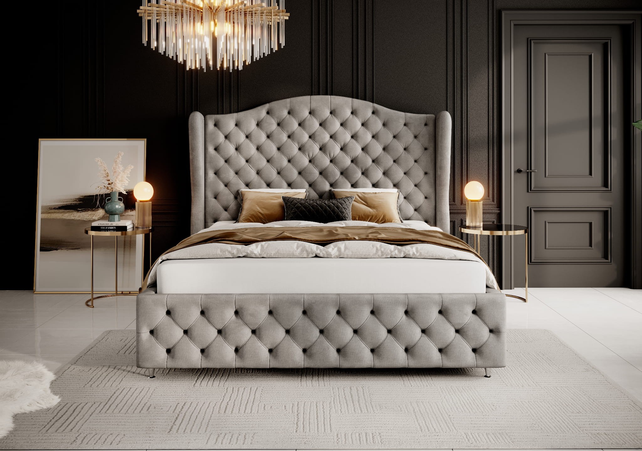 łóżko tapicerowane ROYAL w stylu glamour to ekskluzywne rozwiązanie dla wszystkich, którzy cenią sobie królewski charakter w swoim domu. Model wykonany z aksamitnego weluru, zapewni nie tylko komfort, ale również elegancki i luksusowy wygląd. łóżko tapicerowane w stylu glamour to prawdziwa ozdoba sypialni, która pozwoli na ucieczkę od codzienności i zrelaksowanie się w komfortowych warunkach.