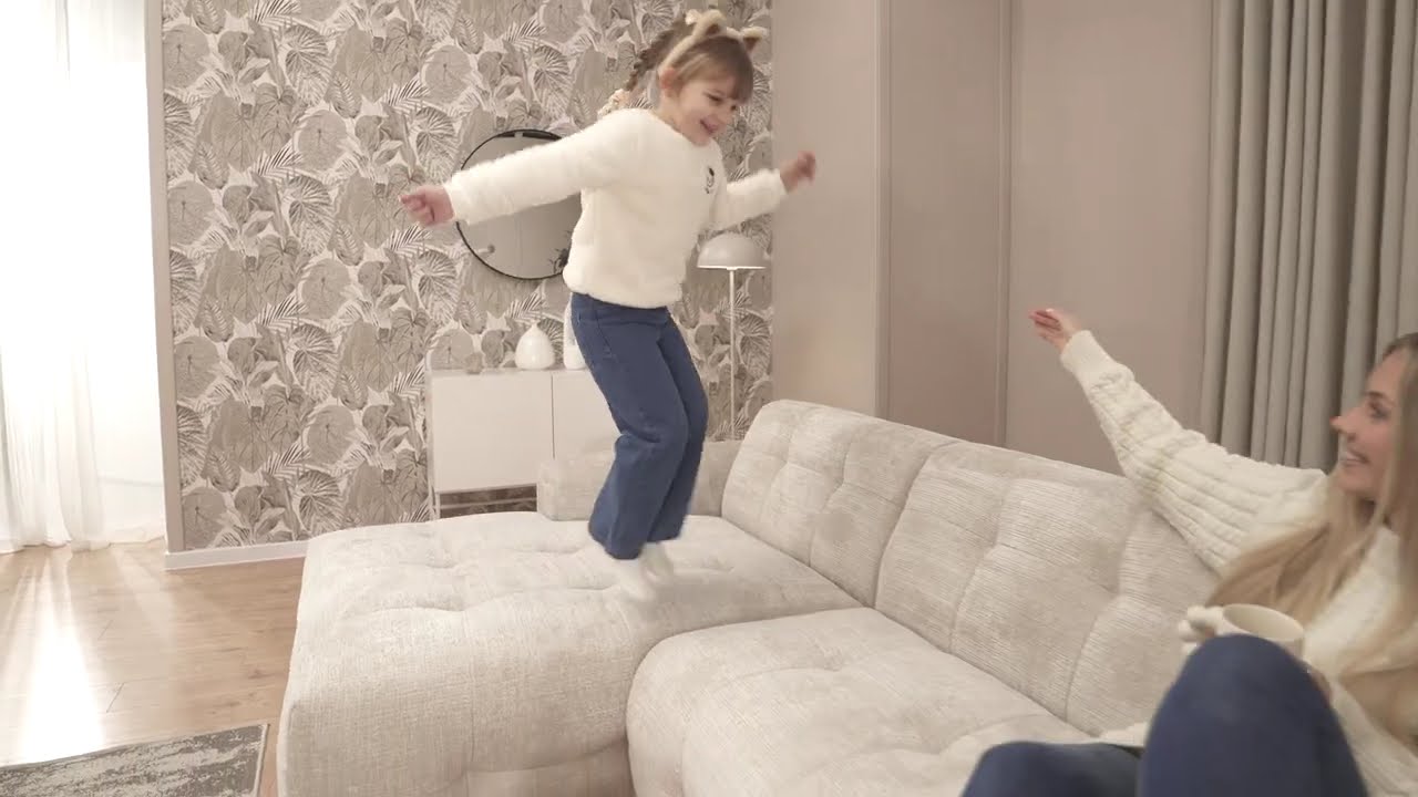 Solidność i trwałość Narożnika Imperial to zasługa jego przemyślanej konstrukcji. Szkielet mebla został wykonany z połączenia płyt wiórowych, MDF, HDF, drewna litego oraz sklejki. Takie zestawienie materiałów gwarantuje maksymalną stabilność i odporność na codzienne obciążenia, co jest niezwykle ważne dla mebla tak intensywnie użytkowanego jak narożnik do salonu. Detale również zostały starannie dopracowane – czarne, plastikowe nóżki o wysokości zaledwie 3 cm są niemal niewidoczne, co potęguje wrażenie, że mebel unosi się tuż nad podłogą, nadając mu nowoczesnego, "low-profile" charakteru. Mimo swojej masywnej bryły, narożnik sprawia wrażenie lekkiego i eleganckiego. Co więcej, tył oparcia tapicerowany jest tą samą tkaniną obiciową, co oznacza, że Narożnik Imperial może stać swobodnie na środku salonu, prezentując się estetycznie z każdej strony i nie wymagając przylegania do ściany.