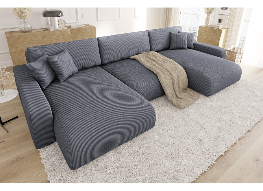 Rozkładany narożnik nowoczesny Sergio U to przestronny narożnik 6-osobowy, oferujący obfite miejsce do siedzenia dla całej rodziny i gości. Jego U-kształtna forma maksymalizuje przestrzeń do wspólnego wypoczynku.