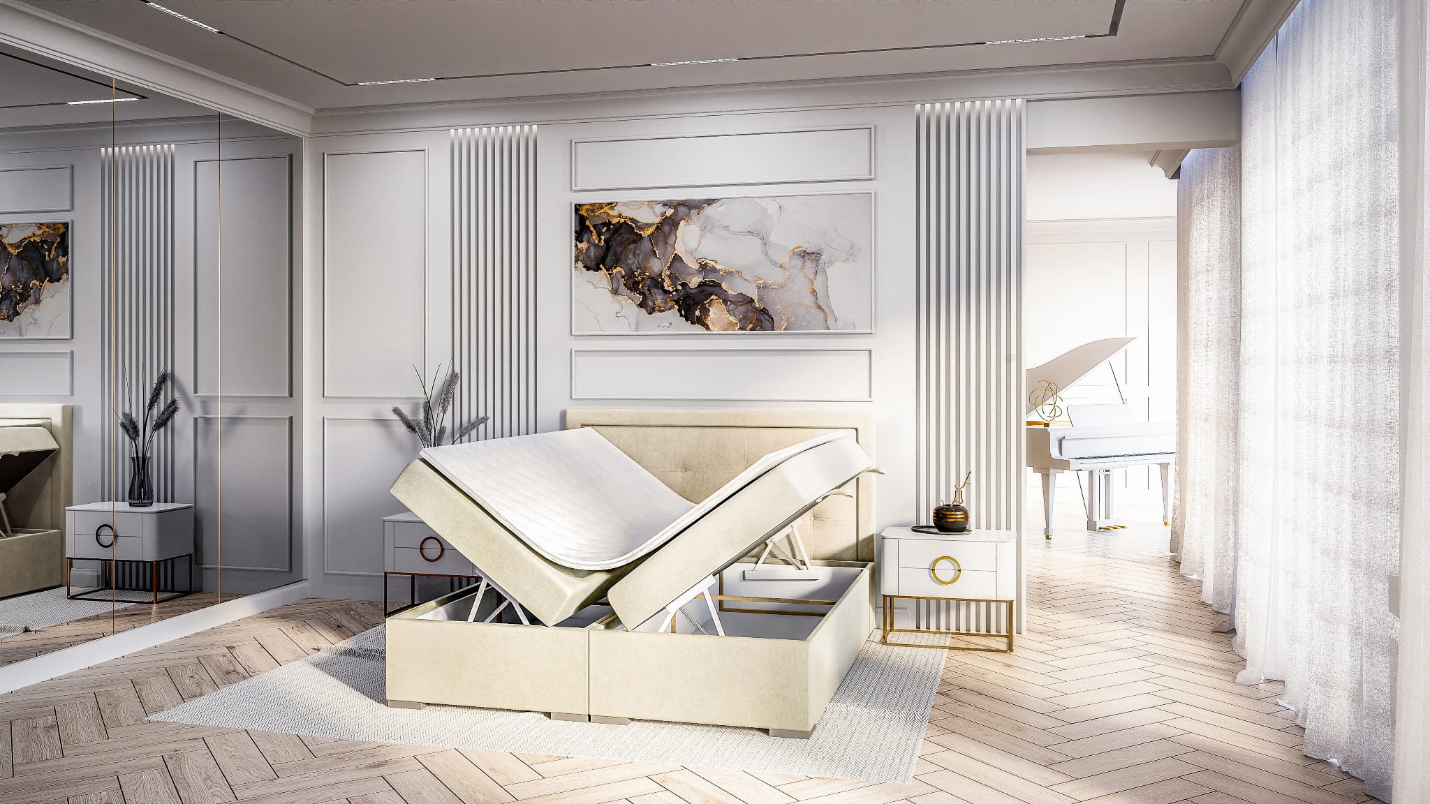 Łóżko kontynentalne SELIA to synonim luksusu i praktyczności, doskonałe rozwiązanie dla tych, którzy cenią sobie nie tylko wygodę i estetykę, ale także funkcjonalność na co dzień.