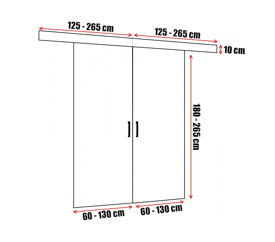 Drzwi przesuwne Prima oferują szeroki zakres wyboru wymiarów – ich wysokość może wynosić od 180 cm do 265 cm, a szerokość jednego skrzydła od 60 cm do 130 cm. To sprawia, że są one doskonałym rozwiązaniem zarówno do większych, jak i mniejszych przestrzeni. Dzięki temu każdy klient może dostosować drzwi do swoich potrzeb z dokładnością do 1 cm, uzyskując idealne proporcje i estetyczne dopasowanie do pomieszczenia. Maskownica o głębokości 8 cm i wysokości 10 cm, skutecznie ukrywa mechanizm przesuwu, co dodatkowo podkreśla minimalistyczny i schludny wygląd drzwi. Przestrzeń pomiędzy drzwiami, a ścianą wynosi 1,8cm, lecz istnieje możliwość powiększenia tego wymiaru do 3,6cm.