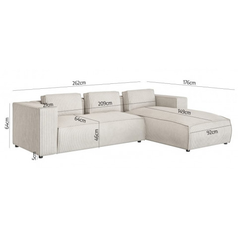 Narożnik posiada głębokie, komfortowe siedzisko oraz wysokie oparcie, które zapewnia odpowiednie wsparcie dla pleców i ramion. W zestawie znajdziemy również luźne poduszki, które można dowolnie ustawiać, dostosowując tym samym mebel do indywidualnych potrzeb użytkownika.